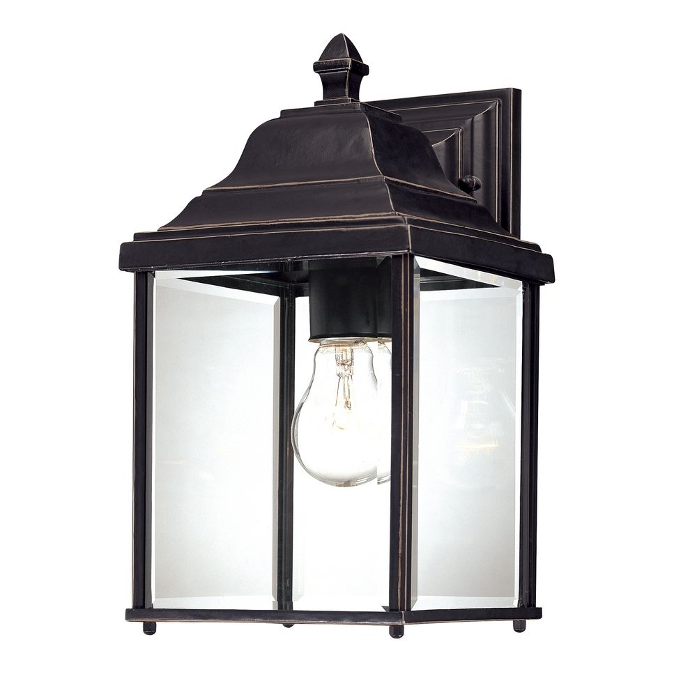 This enduring wall light has a simple, yet sophisticated design with an antique bronze finish and clear, beveled glass. Takes one 100-watt medium base clear light bulb (not included). Suitable for installation in dry, damp, and wet locations. 120 volts line voltage. UL / CUL certified.