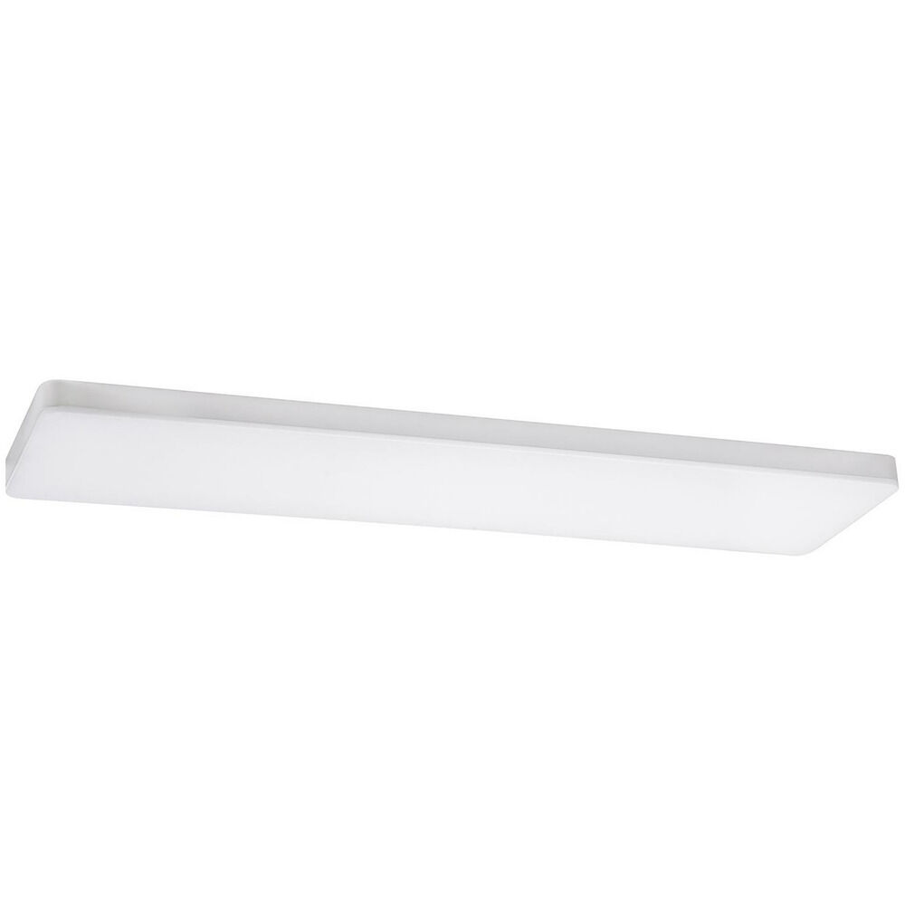 Modern LED linear ceiling mount. Frameless design. White polycarbonate diffuser. Five color adjustable CCT switch. Adjustable wattage switch for more light output. White finish.