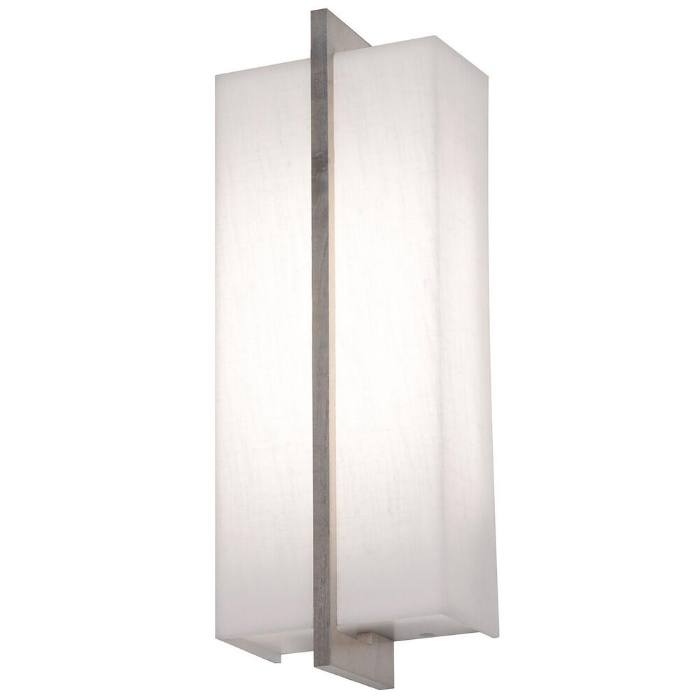 Solid wood accent bars grace this contemporary LED Sconce. Features LumaFuse laminated fabric/acrylic shade that is durable and easy to clean. White bottom and top acrylic diffuser disperses the light. Available in two finishes.
