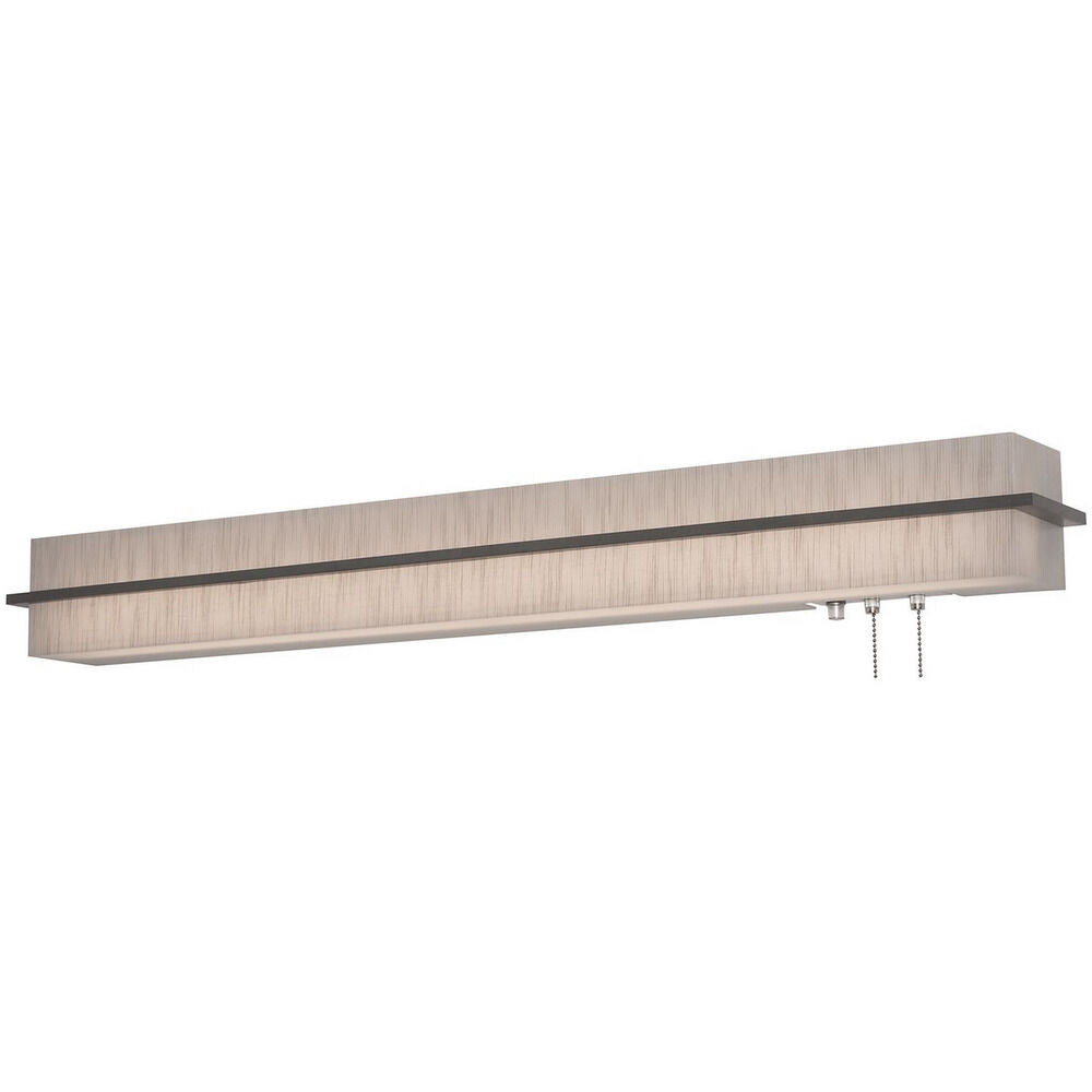 Sleek Modern design LED overbed with 4-way pull switch. Features solid wood accent band. LumaFuse laminated fabric/acrylic front shade. White acrylic top and bottom diffuser. Available in two finishes and two lengths.