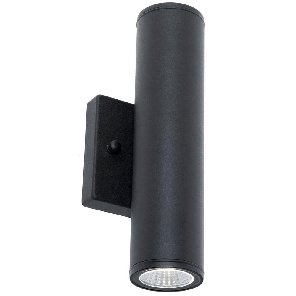 Outdoor cylinder LED wall mount. Aluminum construction. Clear acrylic diffuser. Five color adjustable CCT switch. Available single or dual light and two finishes.