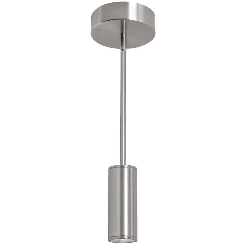 Outdoor cylinder LED pendant. Aluminum construction. Clear acrylic diffuser. 60' adjustable stems included. Five color adjustable CCT switch. Available in two finishes.