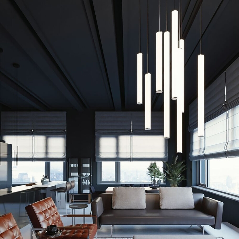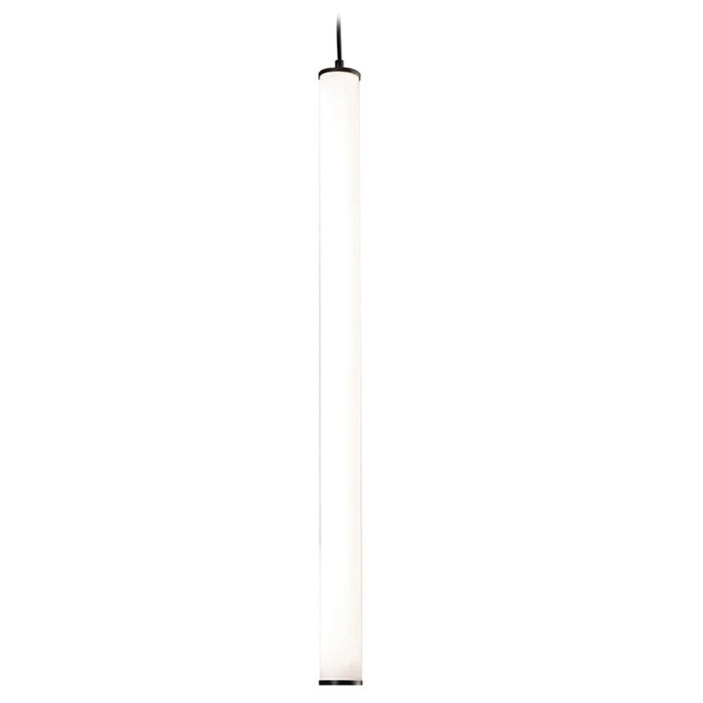 Sleek luminous acrylic cylinder with white acrylic diffuser. Suspended by a 9 ft. adjustable cord with metal monopoint canopy. Hang Individually or in clusters for a bold statement.