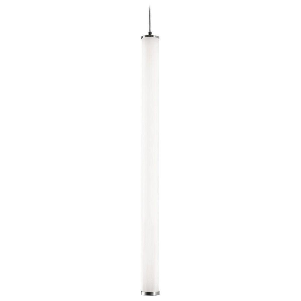 Sleek luminous acrylic cylinder with white acrylic diffuser. Suspended by a 9 ft. adjustable cord with metal monopoint canopy. Hang Individually or in clusters for a bold statement.