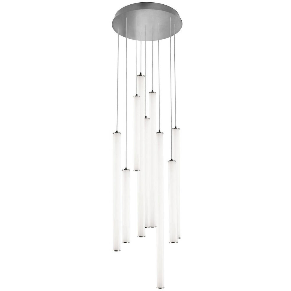 Sleek luminous acrylic cylinder with white acrylic diffuser. Suspended by a 9 ft. adjustable cord with metal monopoint canopy. Hang Individually or in clusters for a bold statement.