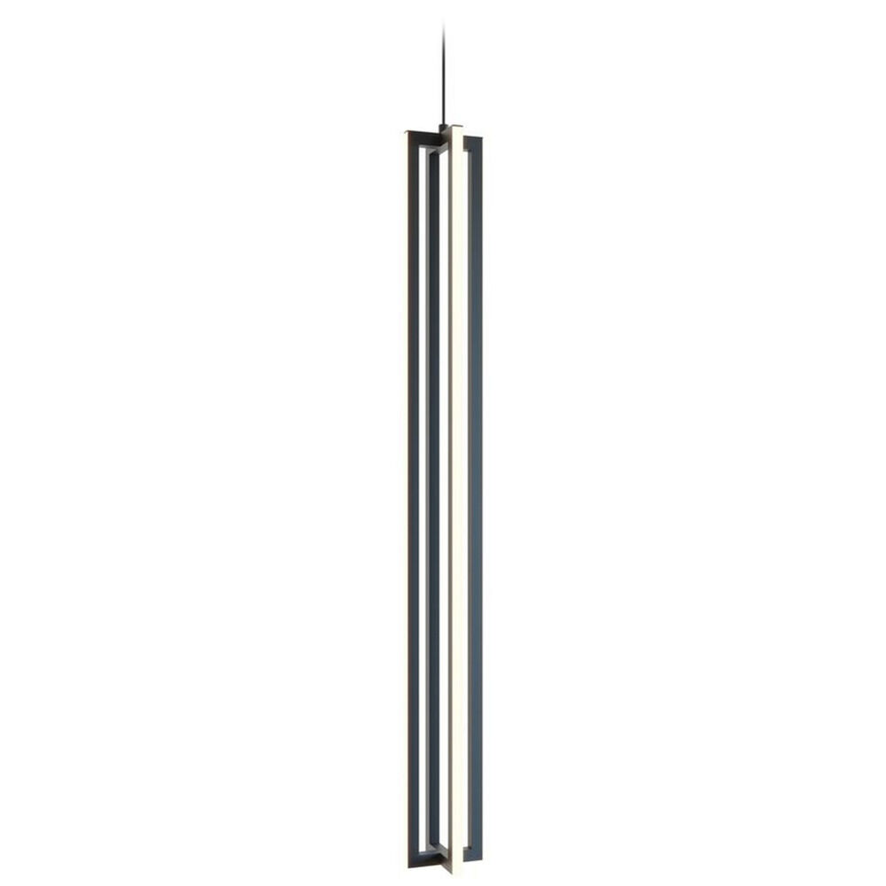 Contemporary LED linear pendant with four sided illumination. White acrylic diffuser and 9 ft. adjustable cord. Three finish options. Available in monopoint, round or linear multipoint canopy options.