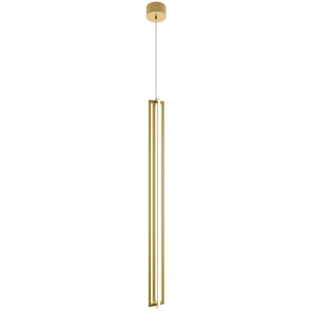 Contemporary LED linear pendant with four sided illumination. White acrylic diffuser and 9 ft. adjustable cord. Three finish options. Available in monopoint, round or linear multipoint canopy options.