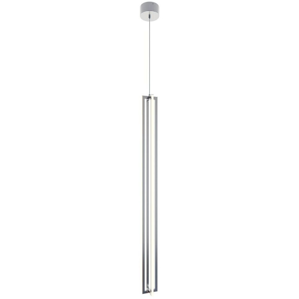 Contemporary LED linear pendant with four sided illumination. White acrylic diffuser and 9 ft. adjustable cord. Three finish options. Available in monopoint, round or linear multipoint canopy options.