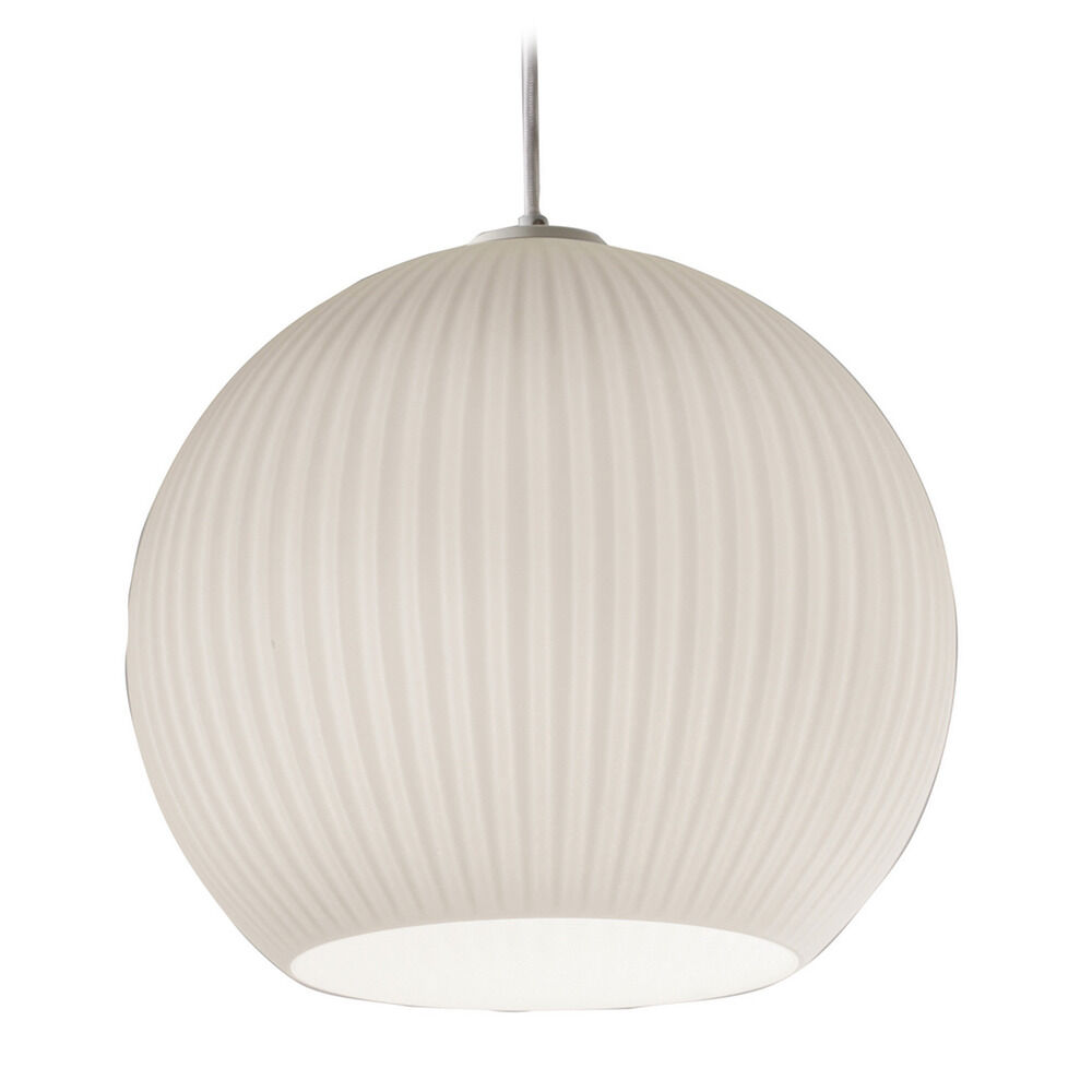 Contemporary LED pendant with soft hand-blown ribbed glass diffuser. Suspended by a 9 ft. adjustable cord with metal monopoint canopy. Hang Individually or in clusters for a bold statement. Medium base socket for multiple lamping options.