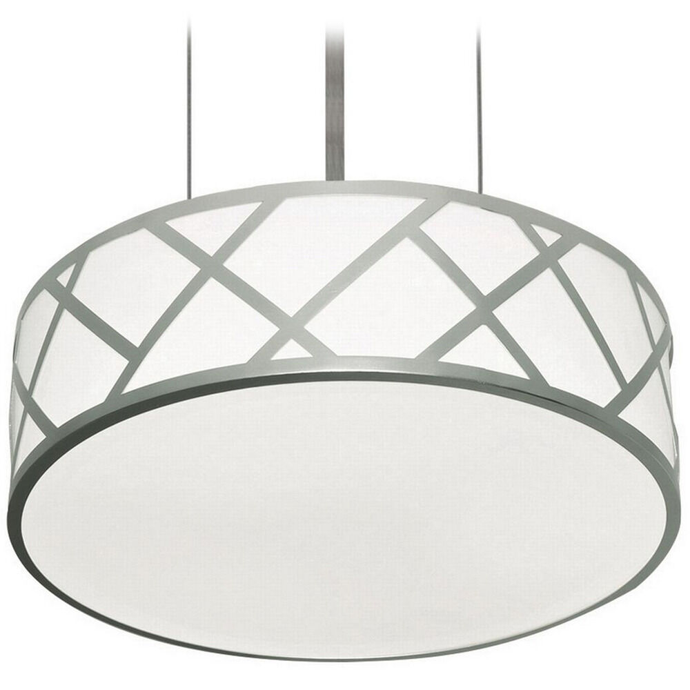 Stylish contemporary LED pendant with a metal geometric pattern accent. Full white acrylic diffuser on side and bottom. Available in three sizes. 3 ft. adjustable ridged stem and aircraft cable expandable to 9 ft.