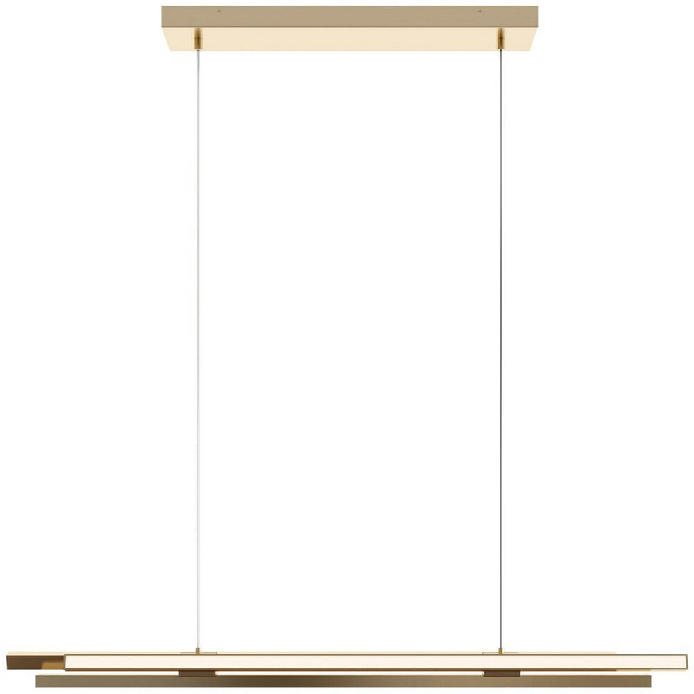 Contemporary LED linear pendant with soft illumination. White acrylic diffuser and 9 ft. adjustable cord. Three finish options.