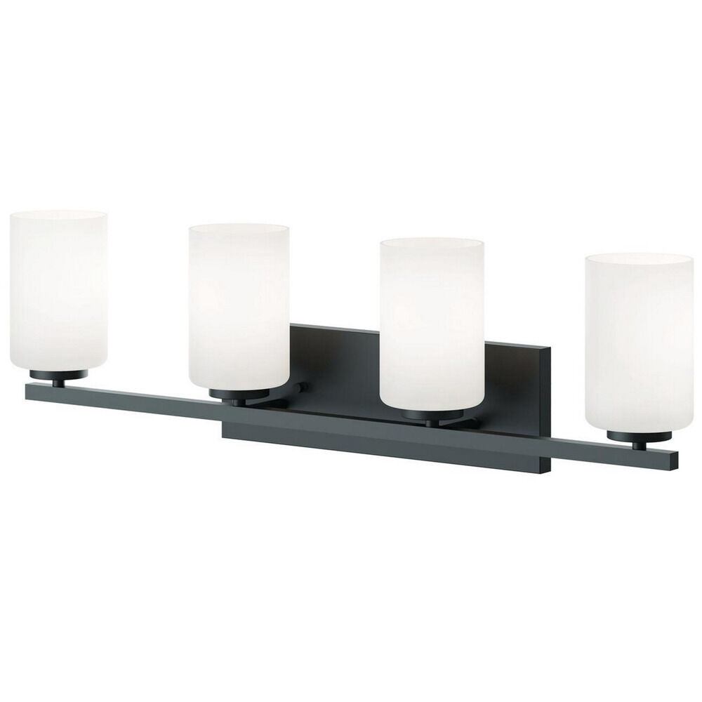 Contemporary / modern black 4-light bathroom light with white glass shade