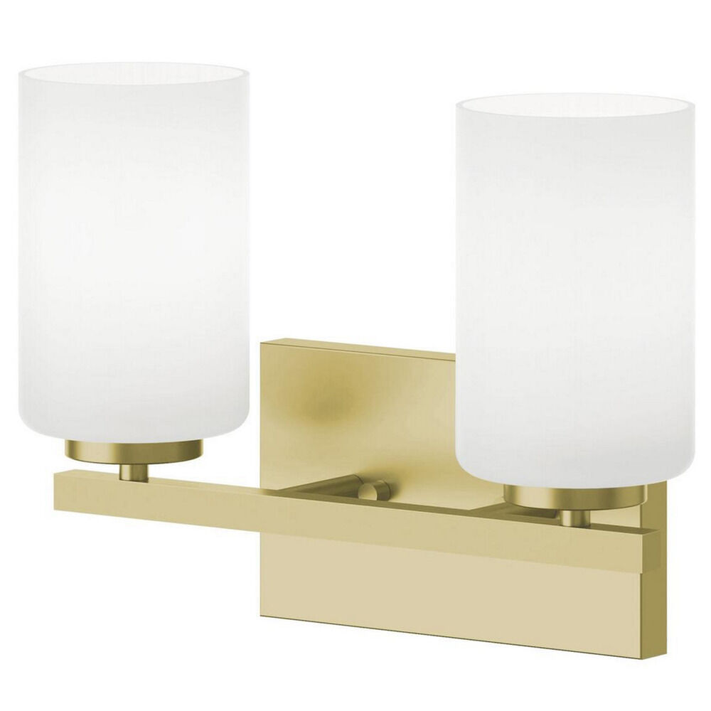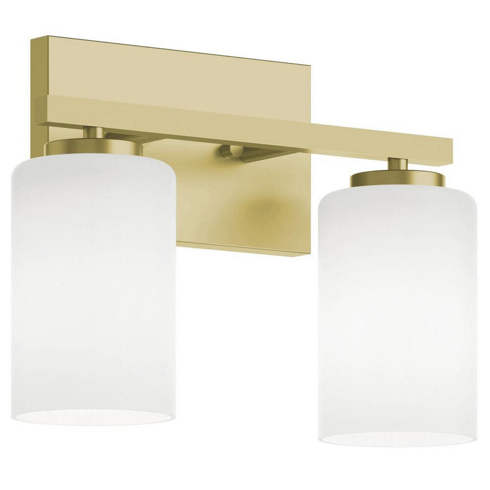 Contemporary / modern light antique brass 2-light bathroom light with white glass shade