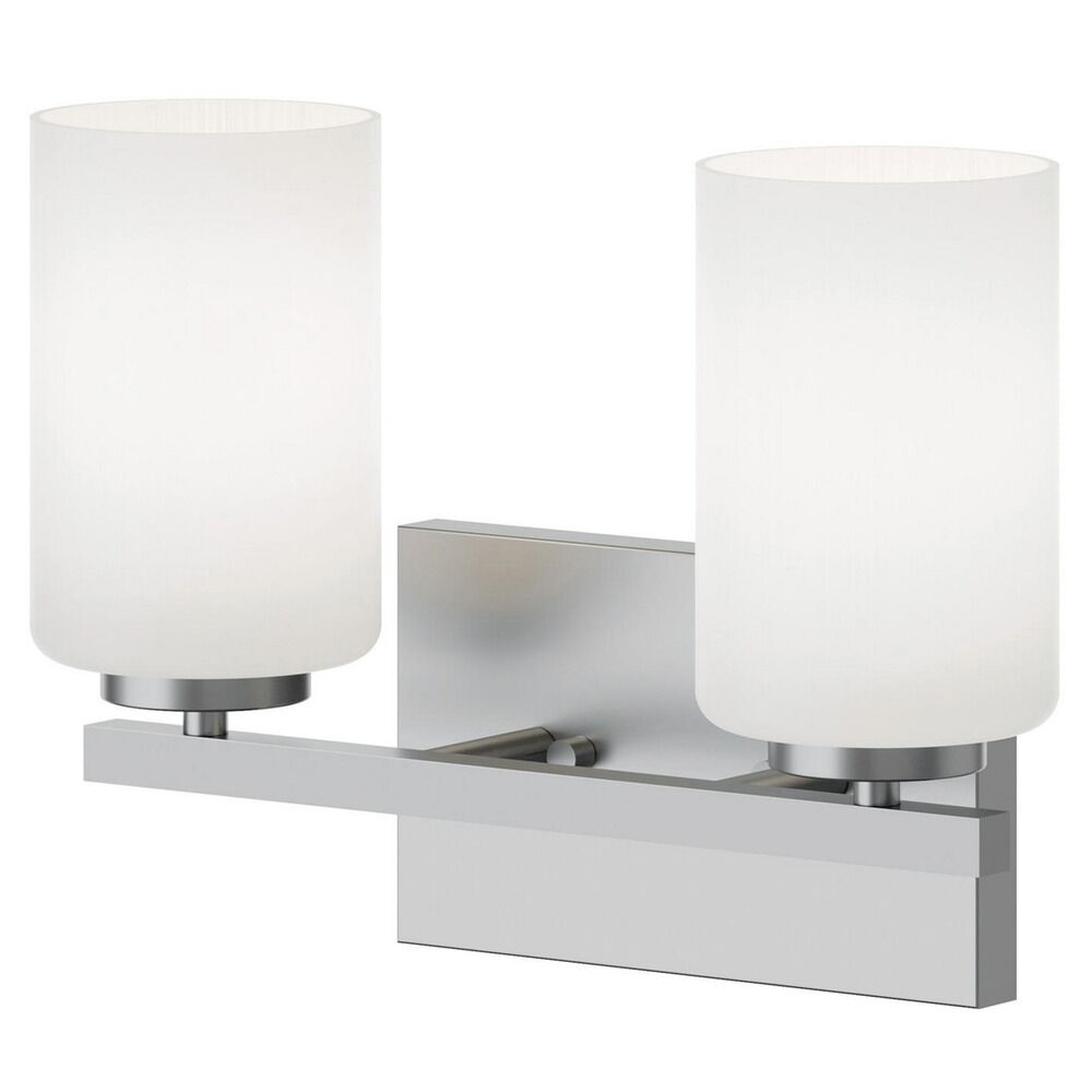 Contemporary / modern satin nickel 2-light bathroom light with white glass shade