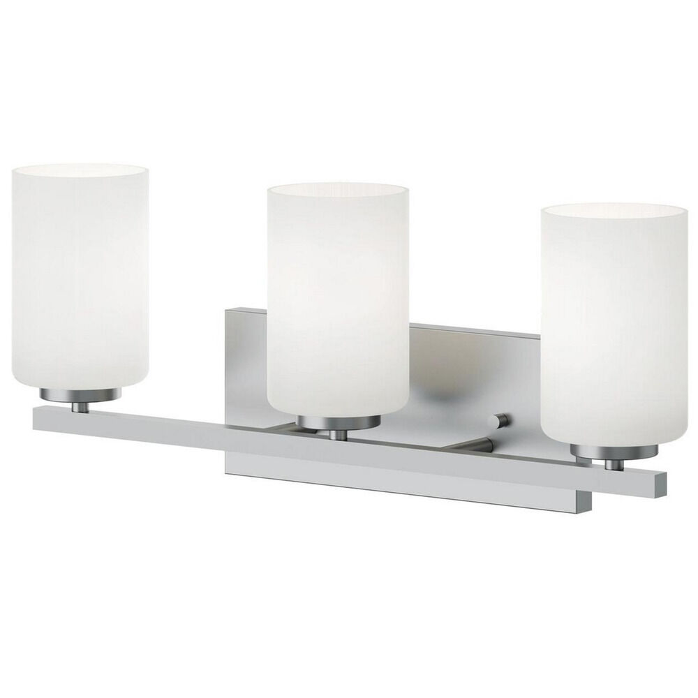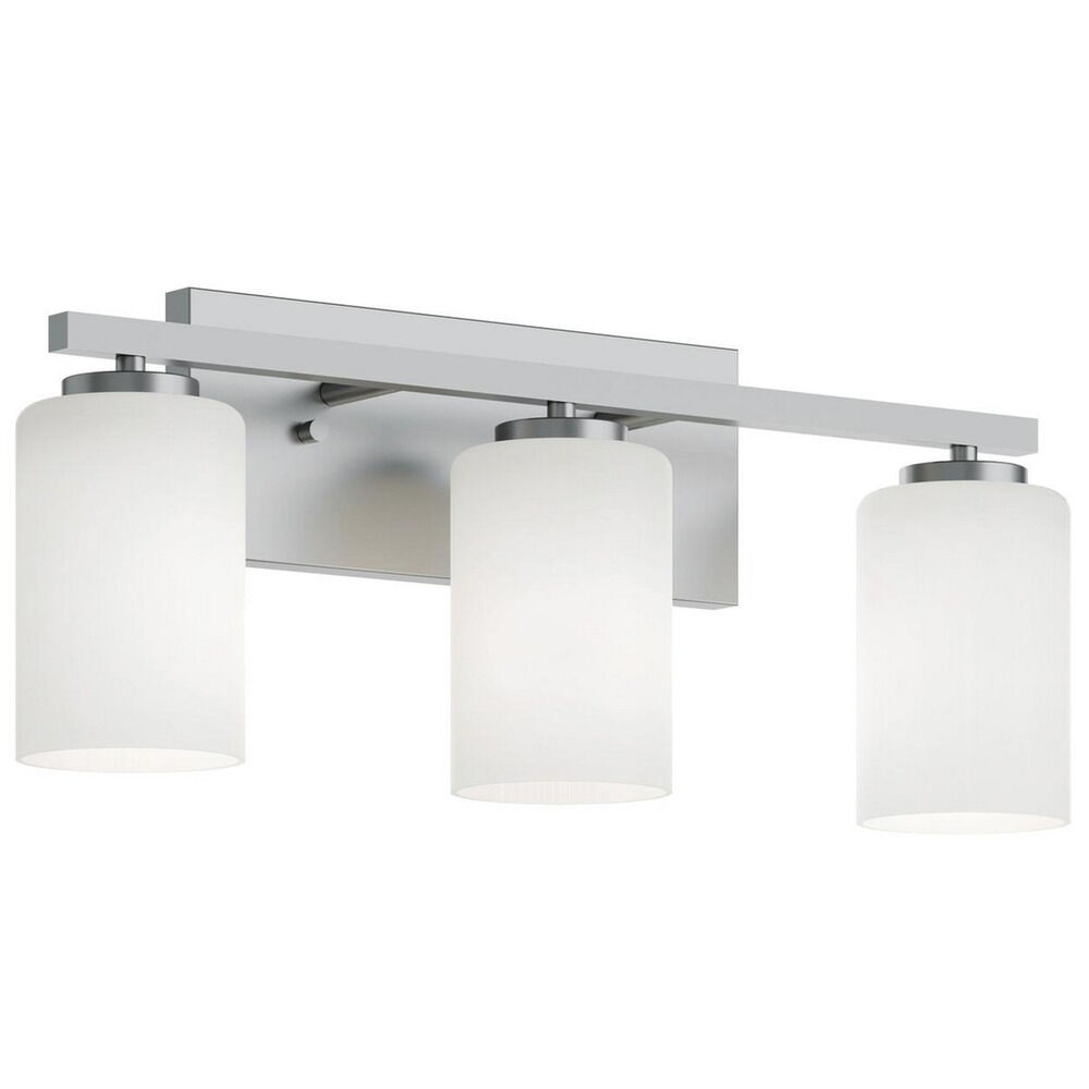 Contemporary / modern satin nickel 3-light bathroom light with white glass shade