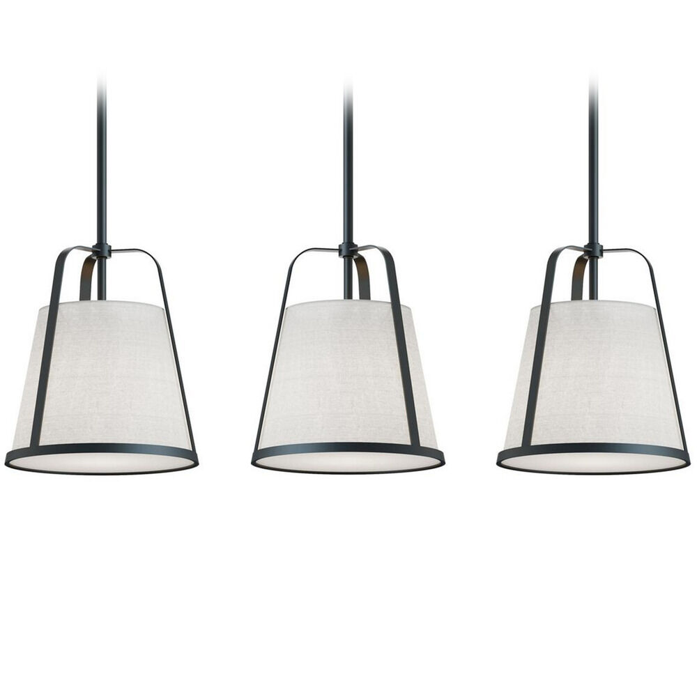 Transitional black 3-light pendant light with white linen shade
