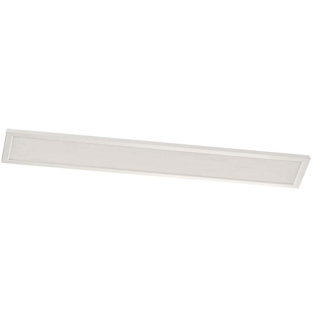 Thin profile LED ceiling light with wide edge-lit panel for even light distribution. White acrylic diffuser. Available in three sizes and two finishes. Three color selectable CCT switch.