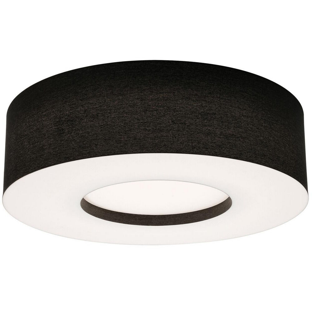 Modern single drum LED semi-flush features LumaFuse laminated fabric/acrylic shade that is durable and easy to clean. Stepped white bottom acrylic diffuser disperses the light evenly. Available in five sizes and two shade colors. User selectable color temperature. Options: emergency battery back-up, motion sensor or emergency battery back-up with motion sensor