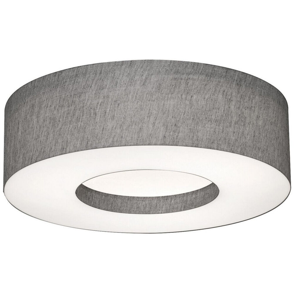 Modern single drum LED ceiling light features LumaFuse laminated fabric/acrylic shade that is durable and easy to clean. Stepped white bottom acrylic diffuser disperses the light evenly. Available in two colors.