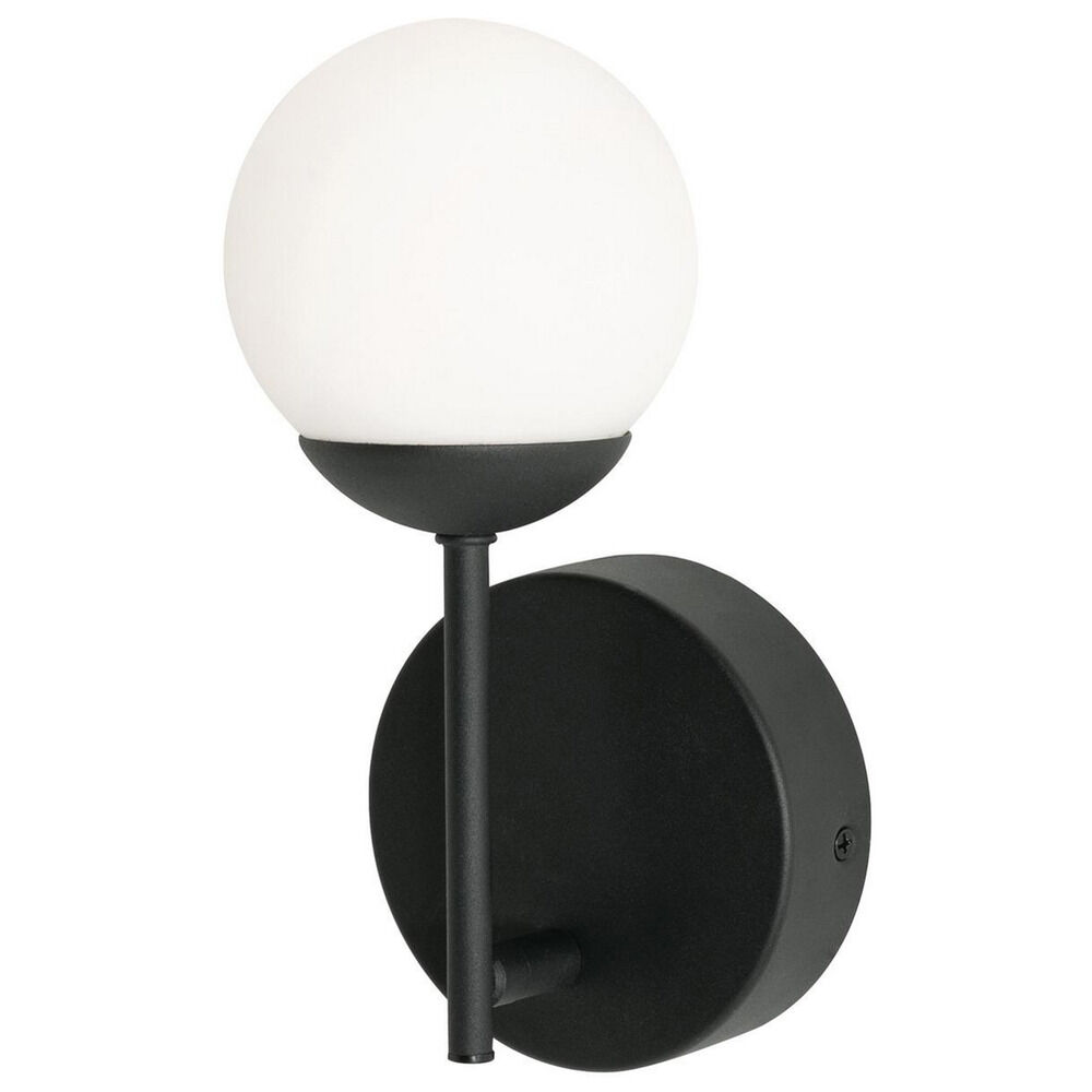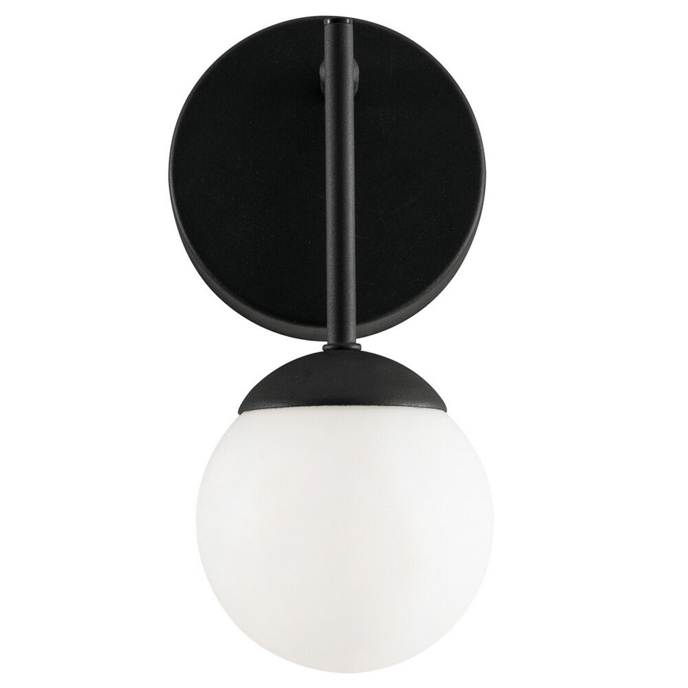 Simplistic LED sconce available with white glass globe. Durable metal construction. Vertical or horizontal mounting. Available in three finishes and two sizes.