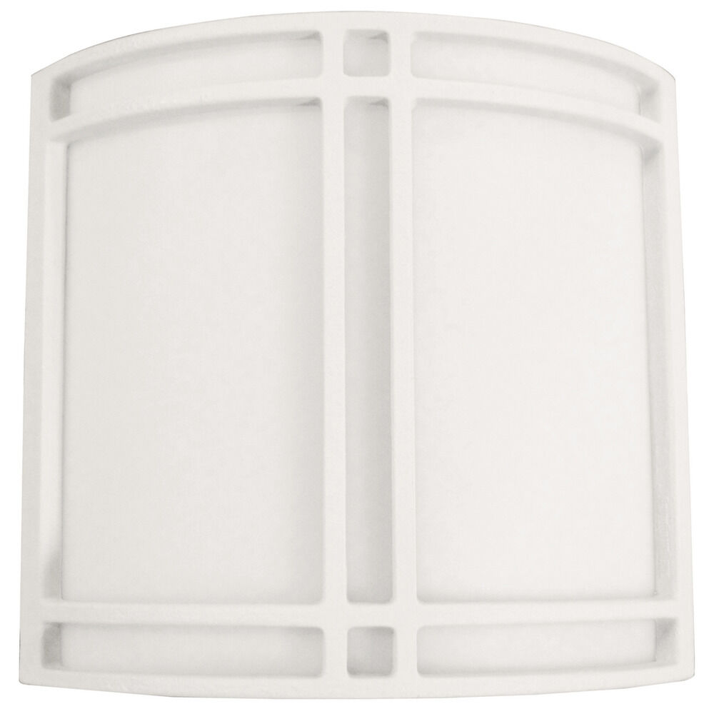 Curved wide LED sconce. Metal frame with crossing vertical and horizontal bars. White acrylic diffuser.