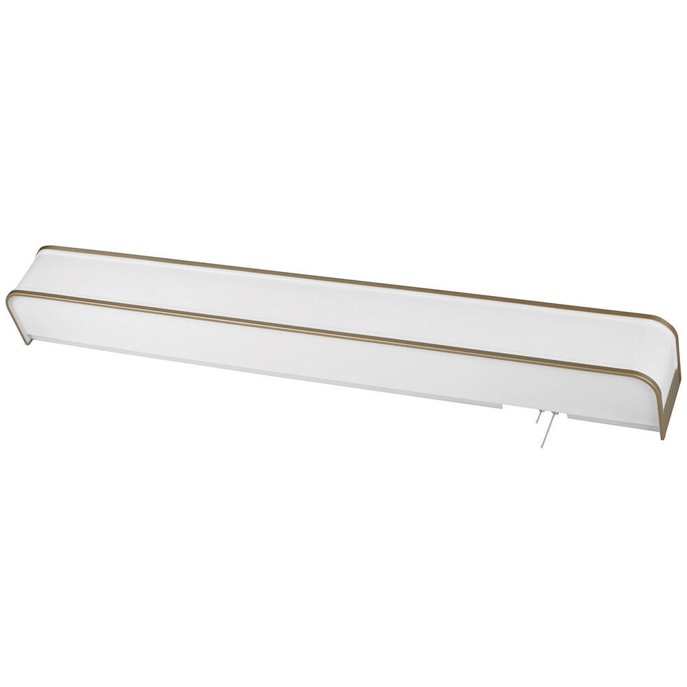 Curved design LED overbed with 4-way pull switch. Solid metal trim accents. White linen pattern acrylic front diffuser. White bottom and clear top acrylic diffuser disperses the light. Available in two finishes and two lengths.