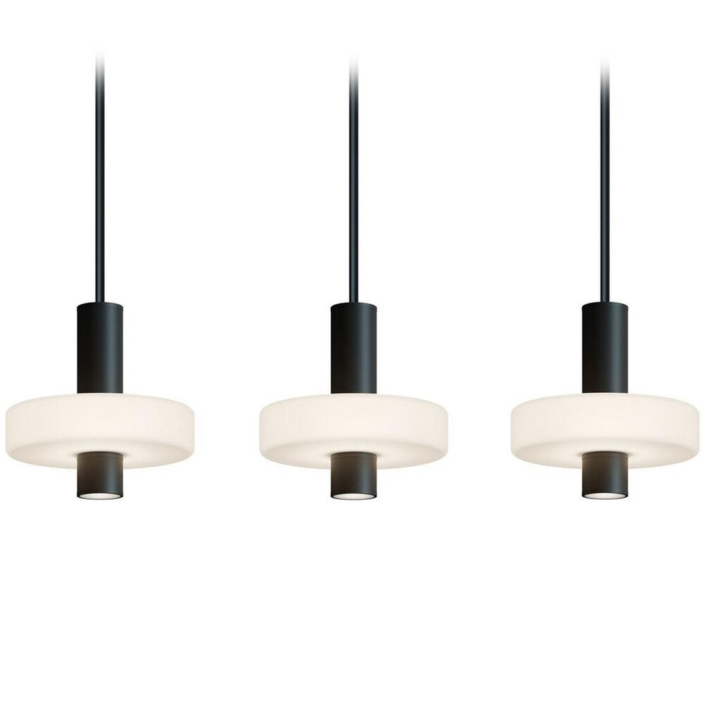 Contemporary / modern black 3-light pendant light with white acrylic shade