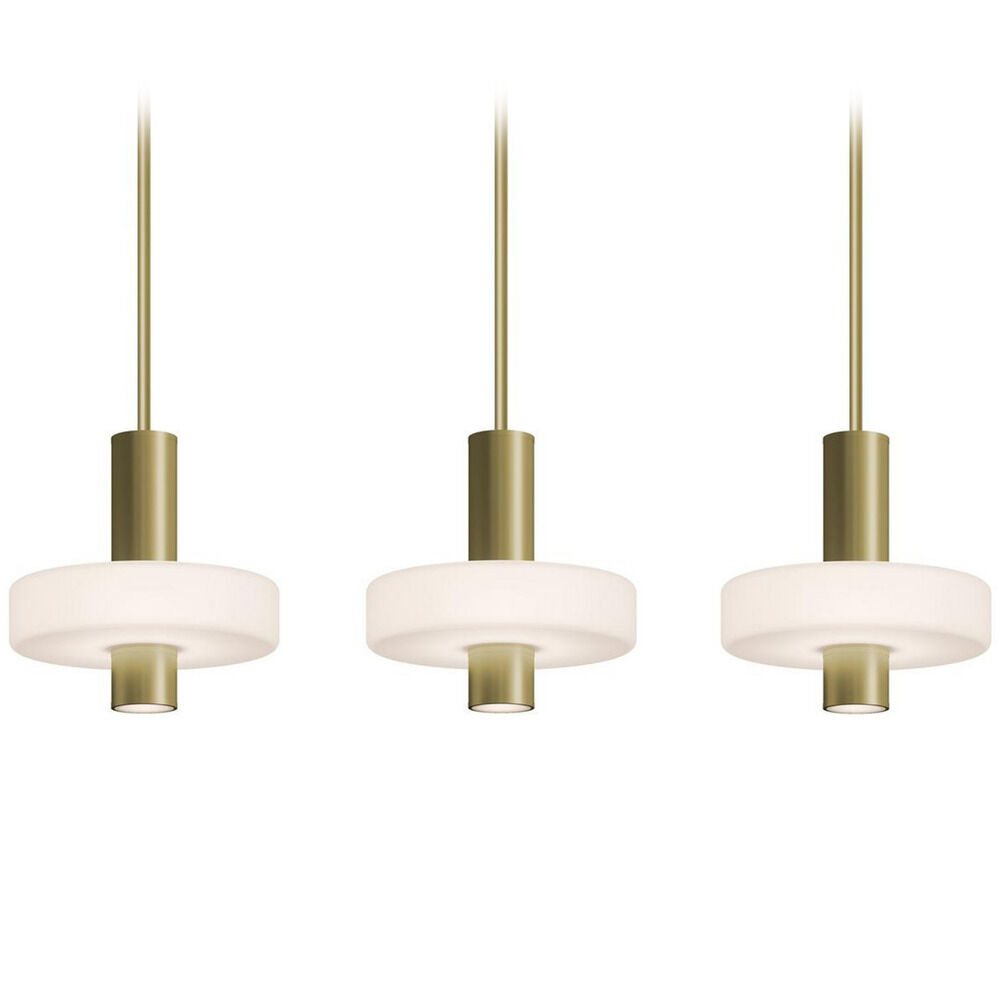 Contemporary / modern light antique brass 3-light pendant light with white acrylic shade