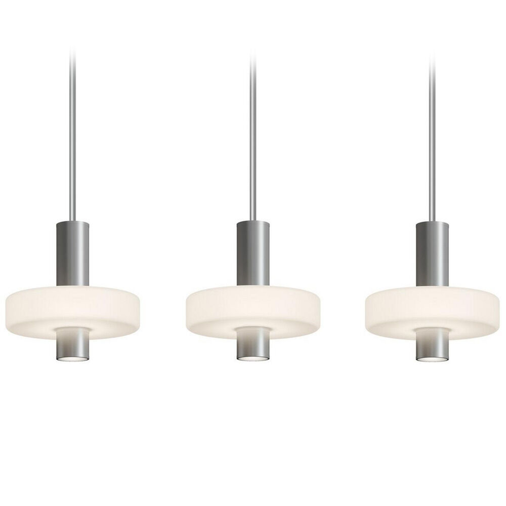 Contemporary / modern satin nickel 3-light pendant light with white acrylic shade