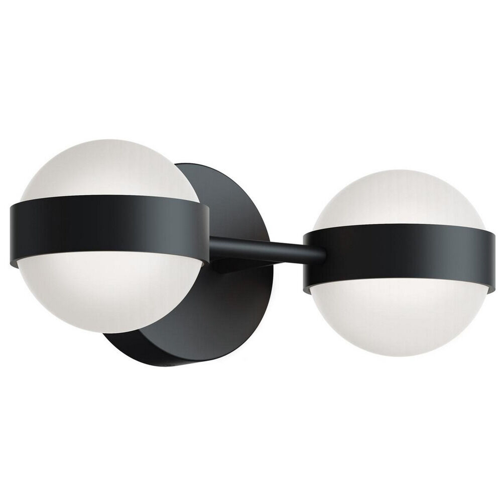 Contemporary / modern black 2-light bathroom light with white acrylic shade