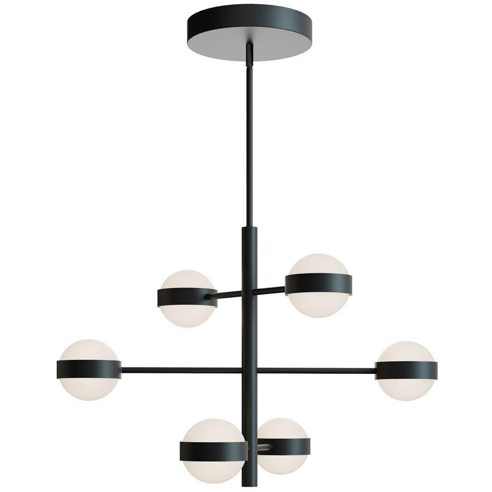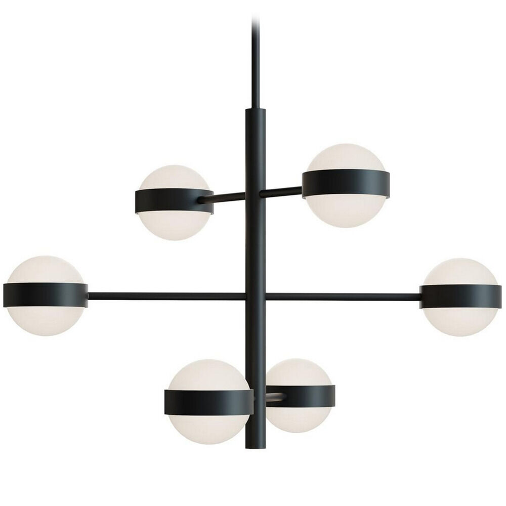 Contemporary / modern black 6-light pendant light with white acrylic shade