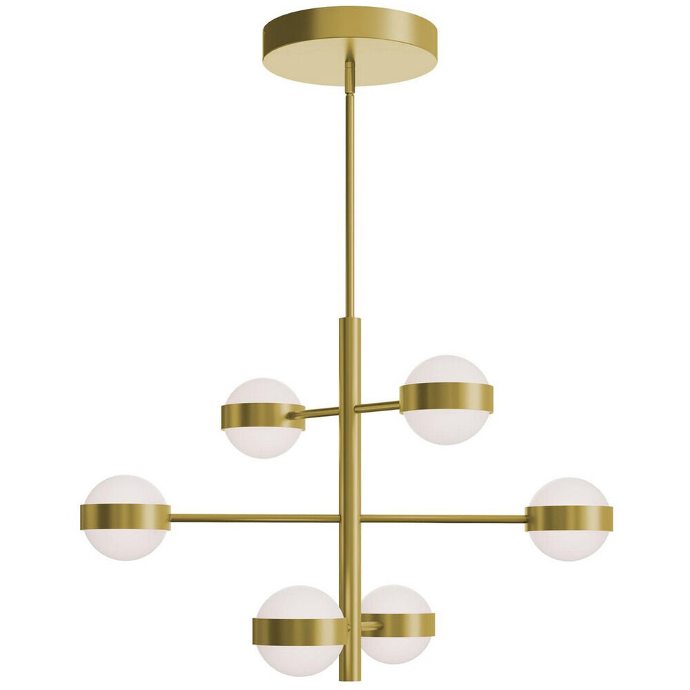 Contemporary / modern light antique brass 6-light pendant light with white acrylic shade