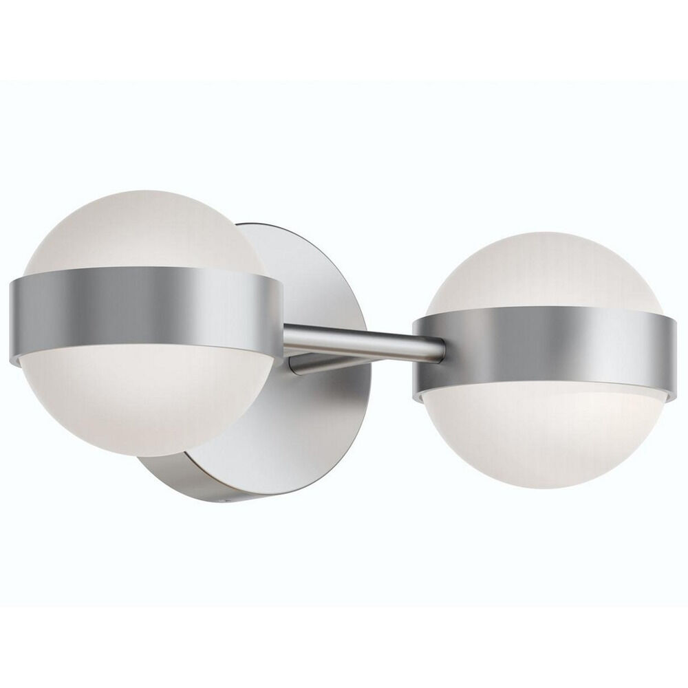 Contemporary / modern satin nickel 2-light bathroom light with white acrylic shade
