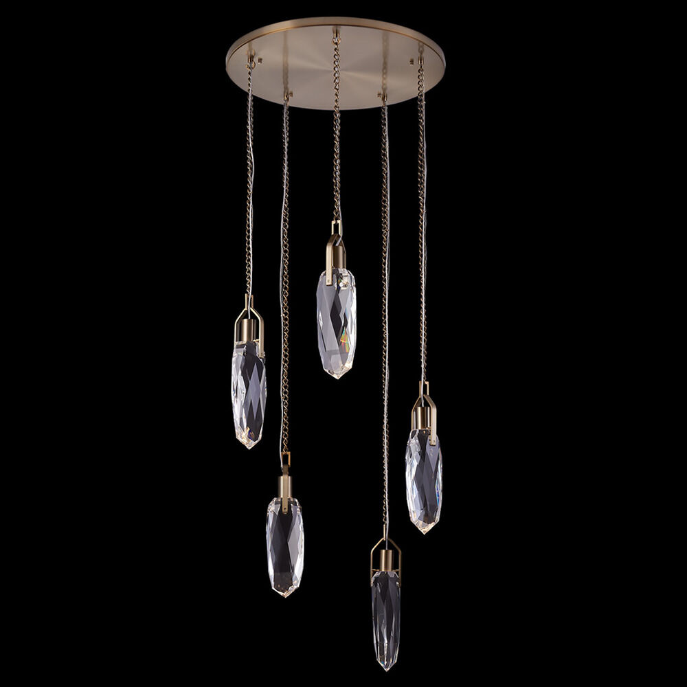 Crystal winter brass 5-light pendant light with clear crystal shade