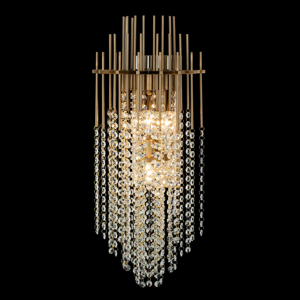 Allegri Crystal Estrella Brushed Champagne Gold SconceManufacturer: Allegri Crystal Model #: 037621-038-FR001 Allegri Crystal Estrella Brushed Champagne Gold Sconce