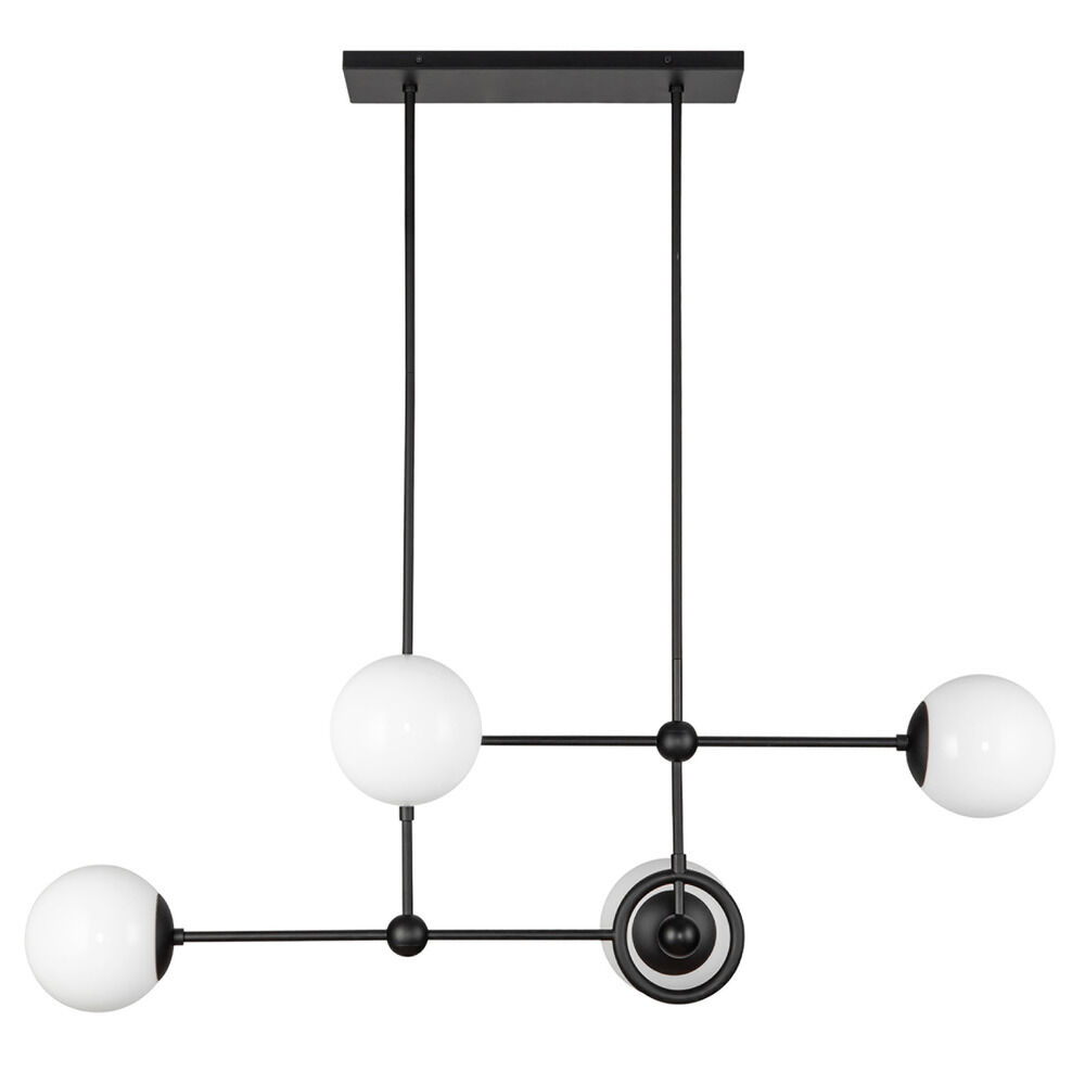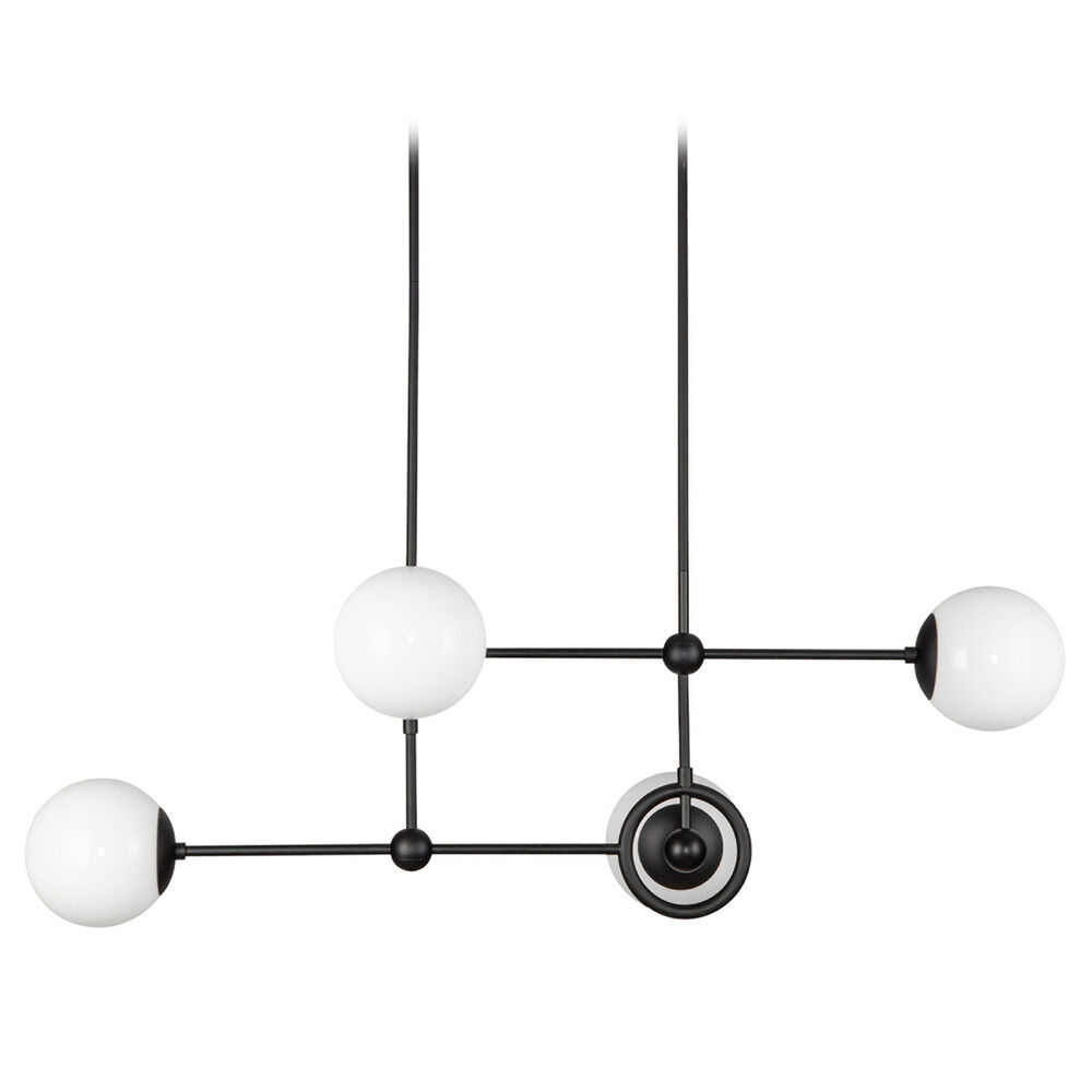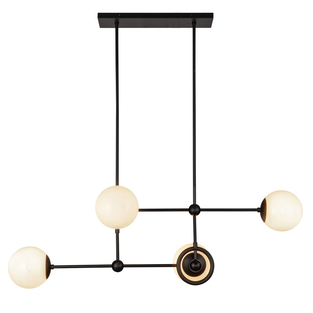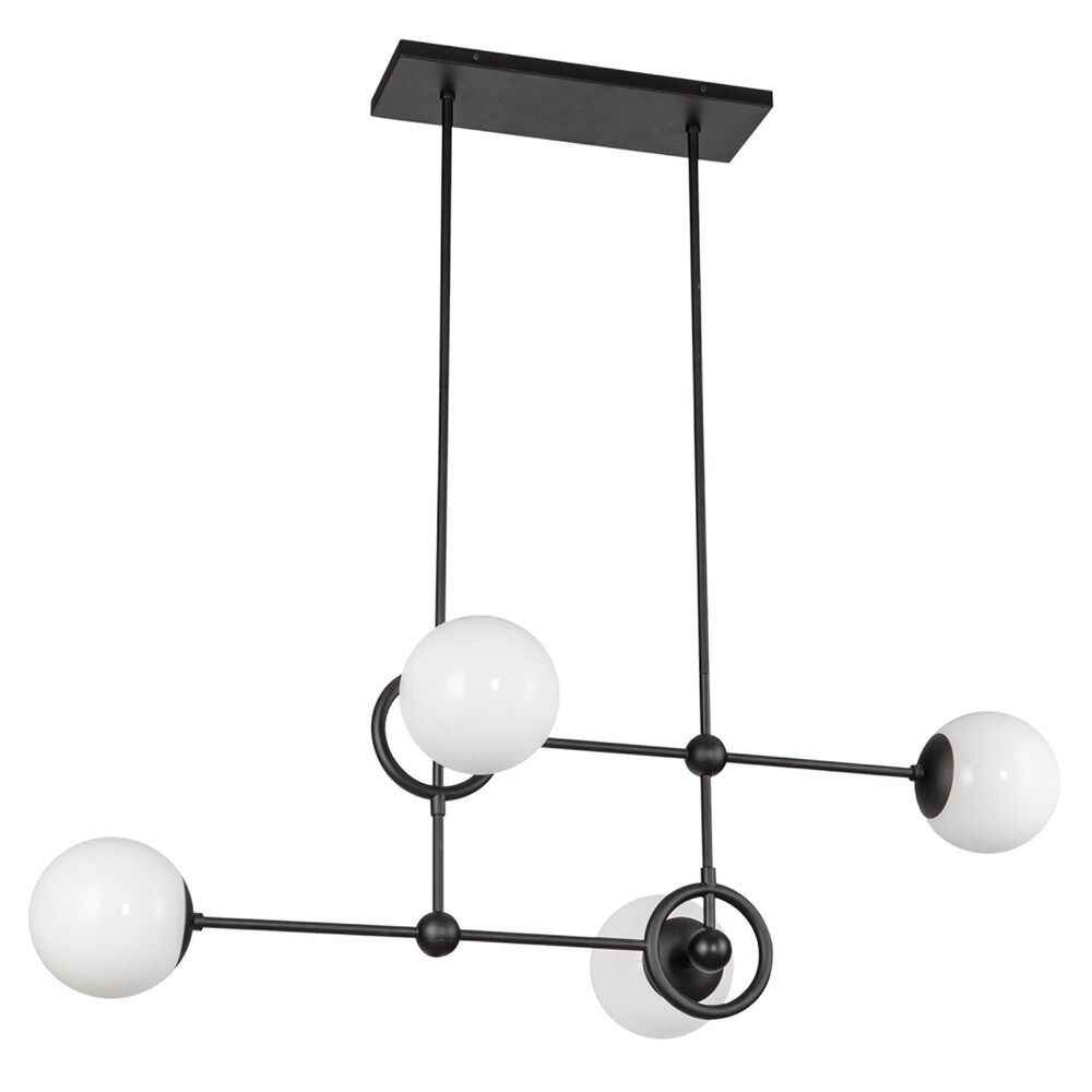 Contemporary / modern matte black 4-light chandelier with glossy opal glass shade