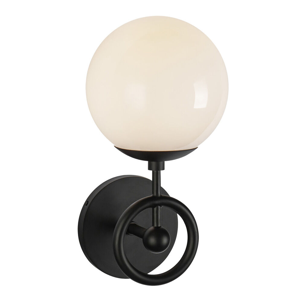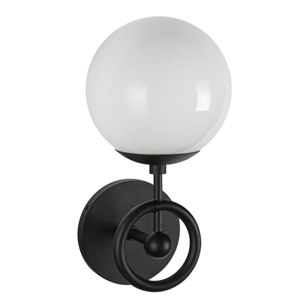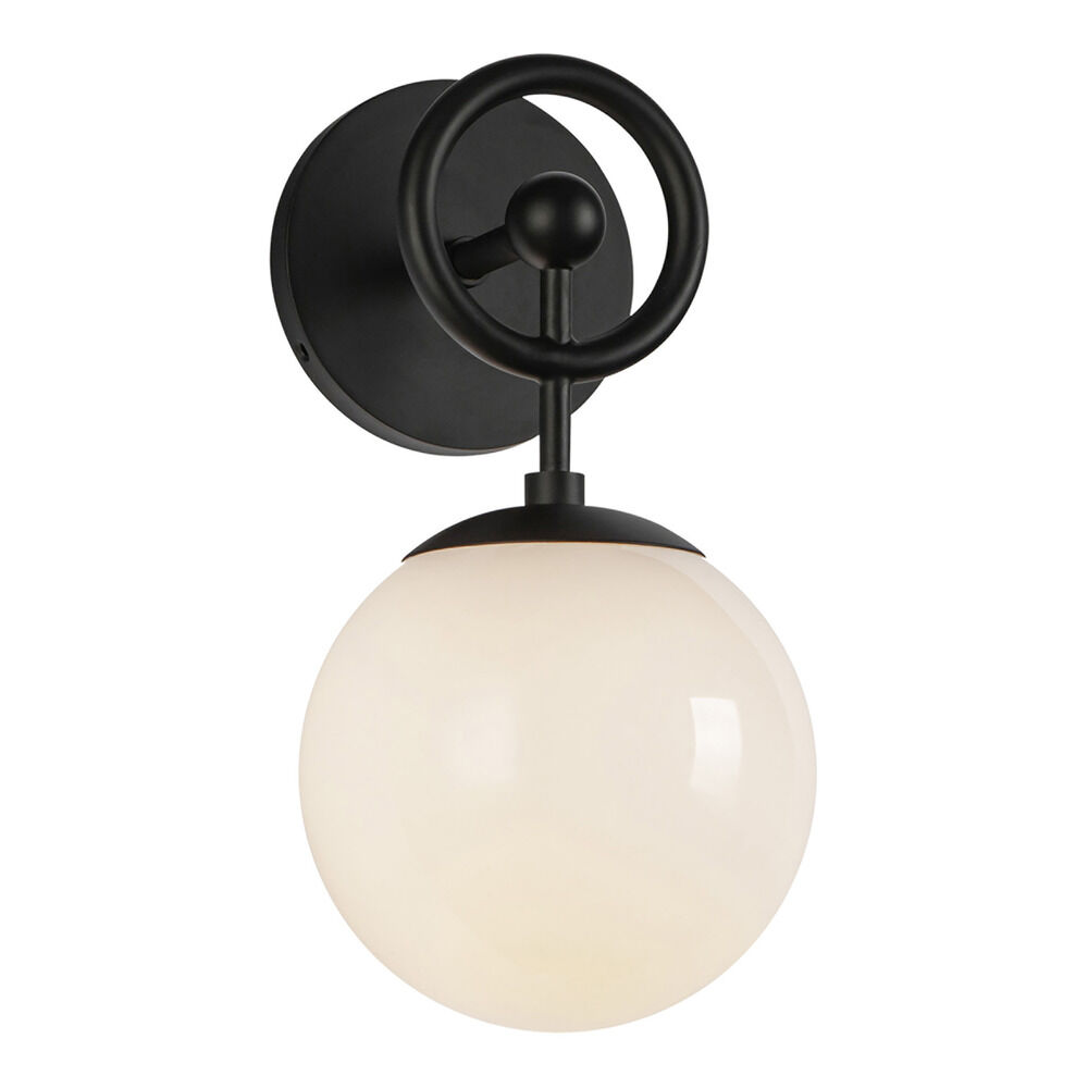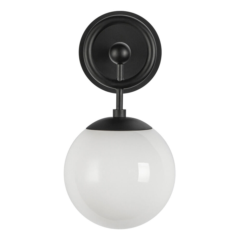 Contemporary / modern matte black 1-light sconce with glossy opal glass shade