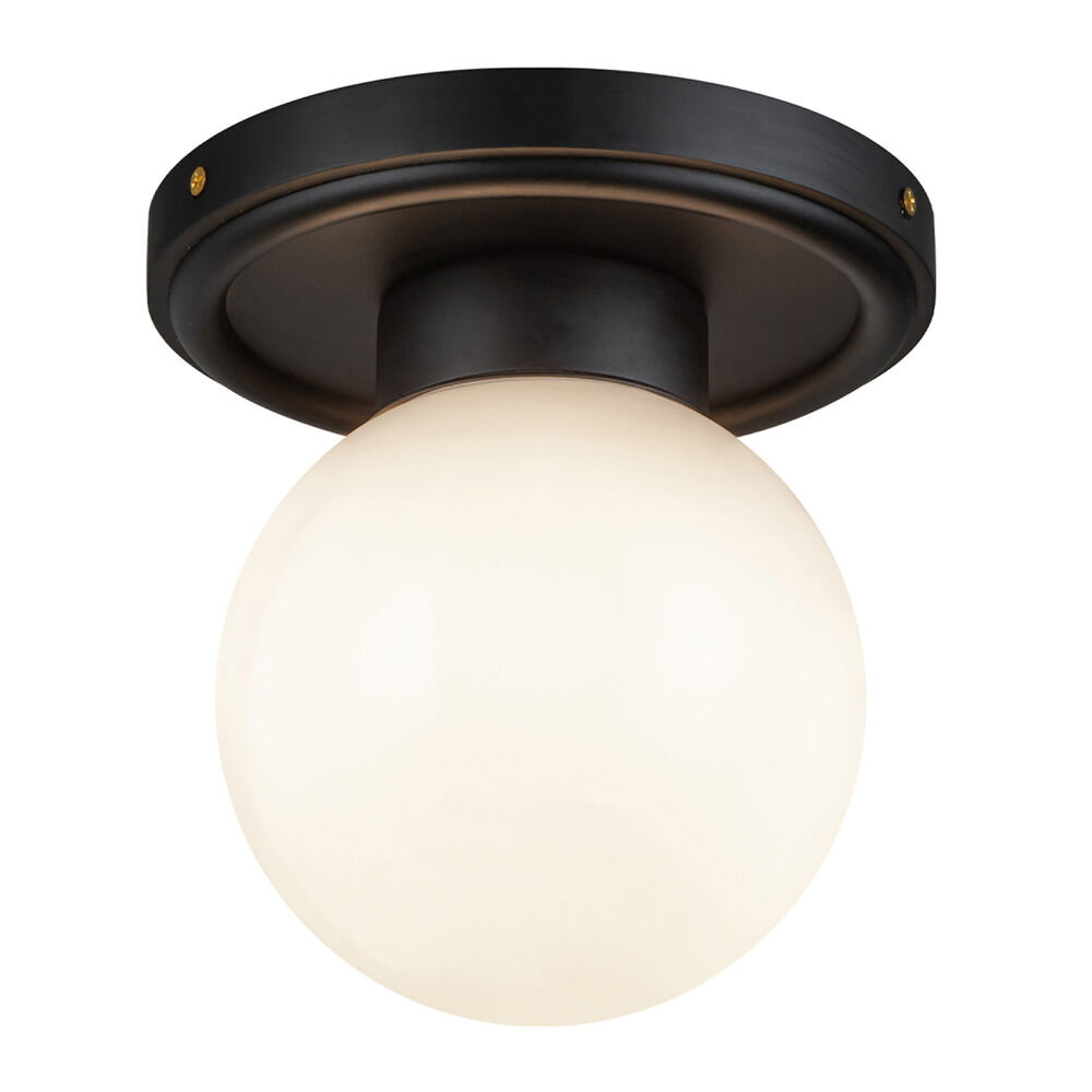 Contemporary / modern matte black 1-light indoor ceiling light with glossy opal glass shade