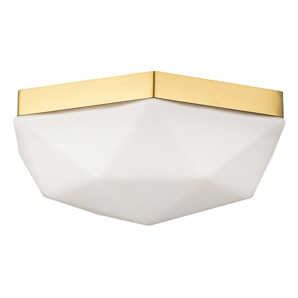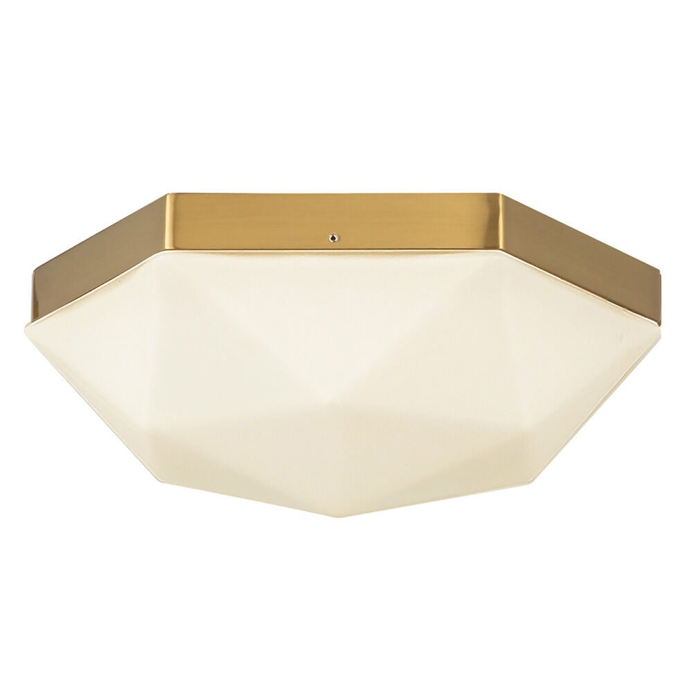 Contemporary / modern brushed gold 2-light indoor ceiling light with matte,faceted opal glass shade