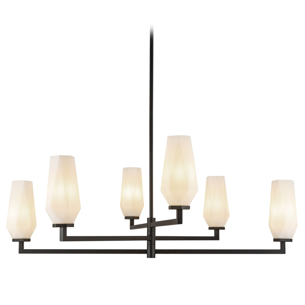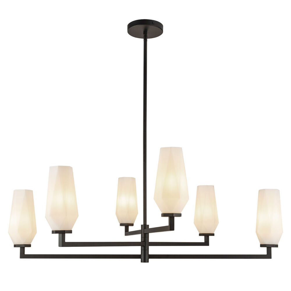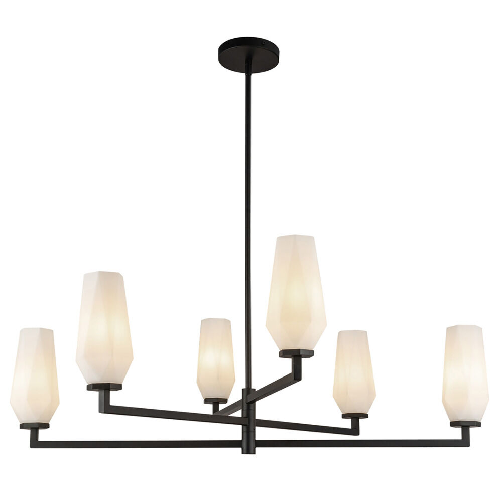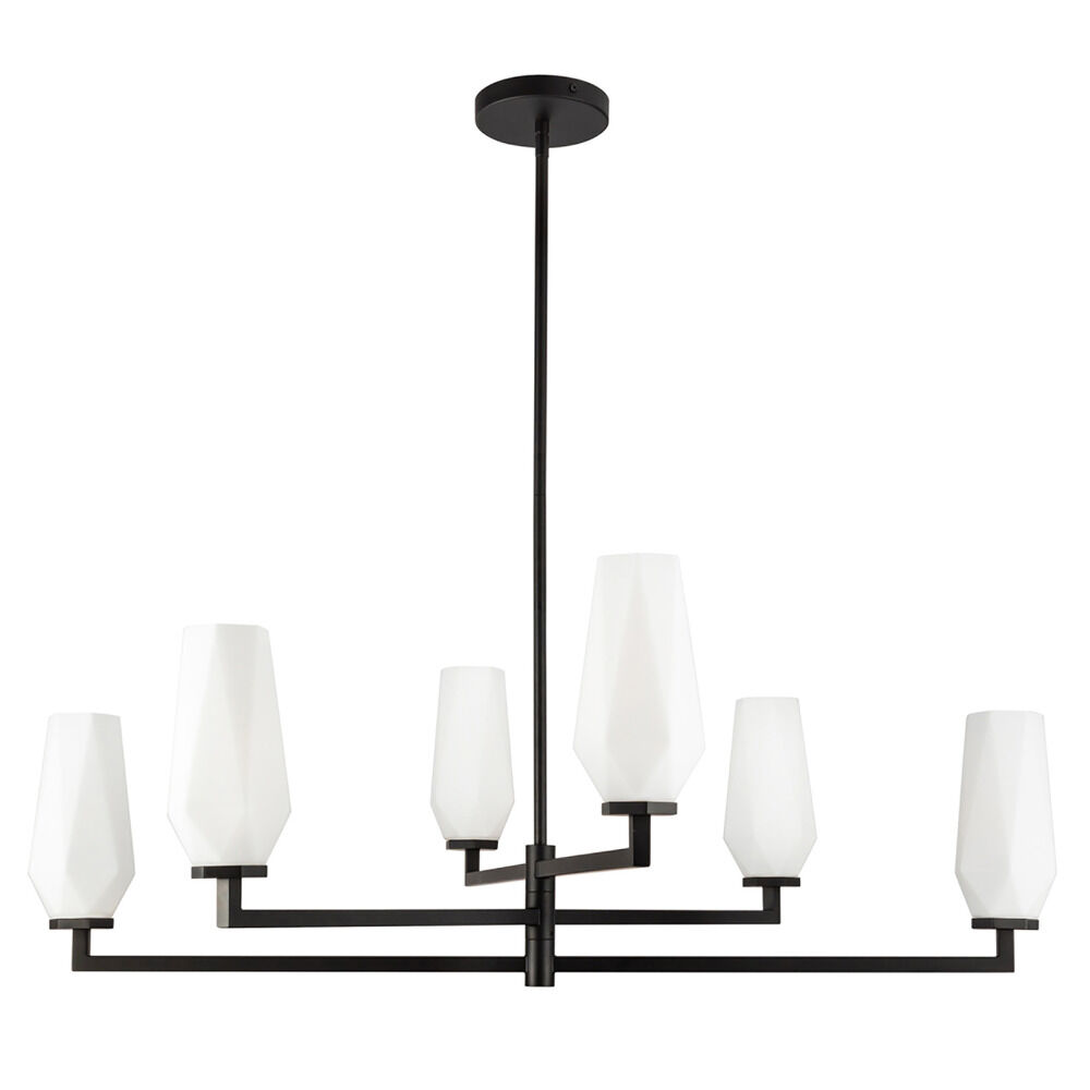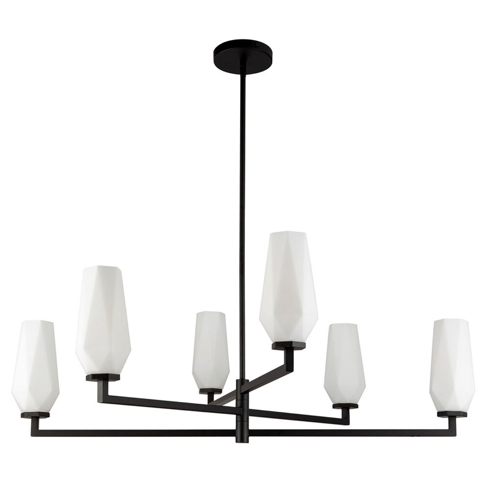 Contemporary / modern matte black 6-light chandelier with matte,faceted opal glass shade