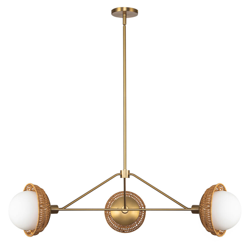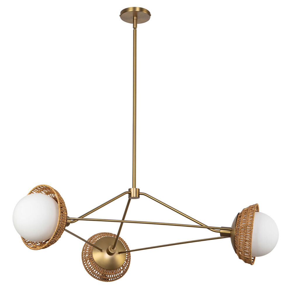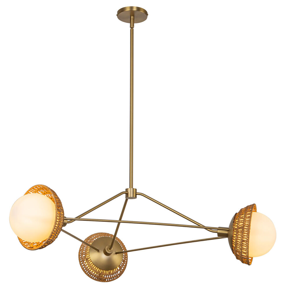 Mid-century modern brushed gold 3-light chandelier with matte opal glass shade