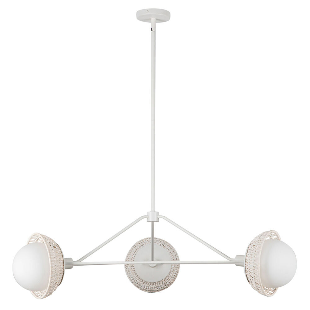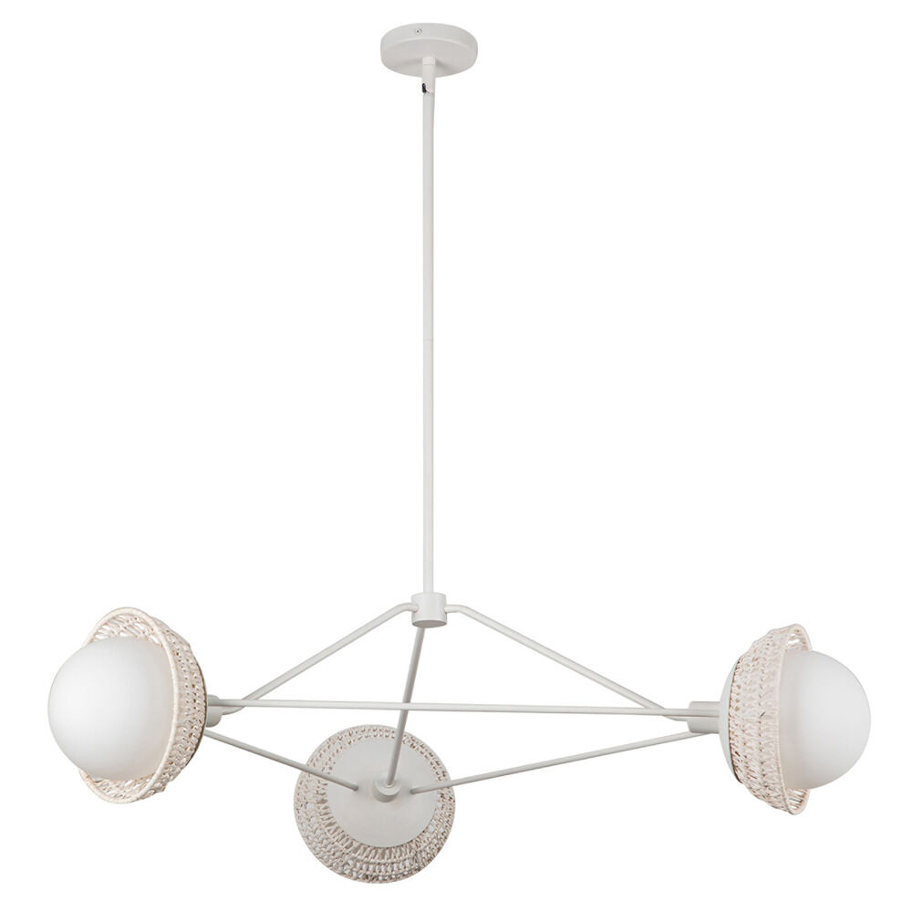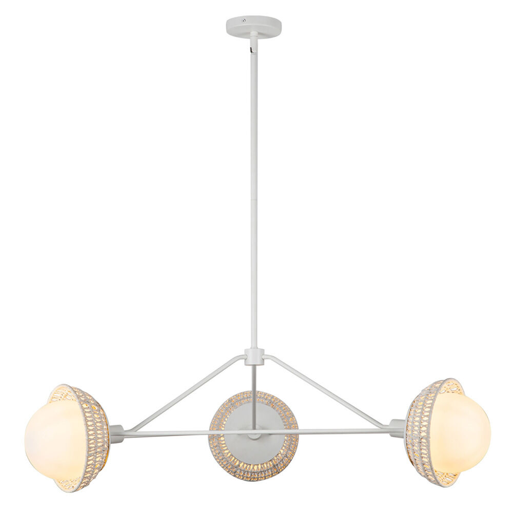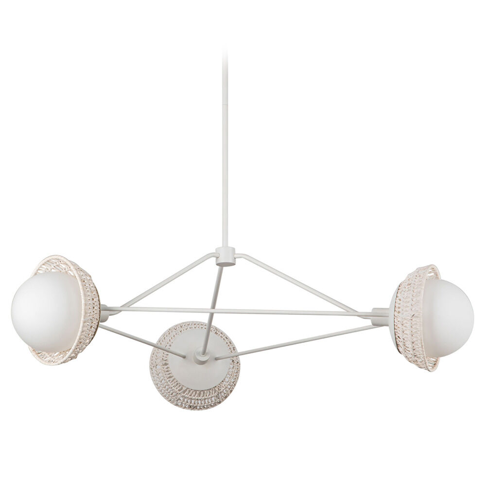 Mid-century modern white 3-light chandelier with matte opal glass shade