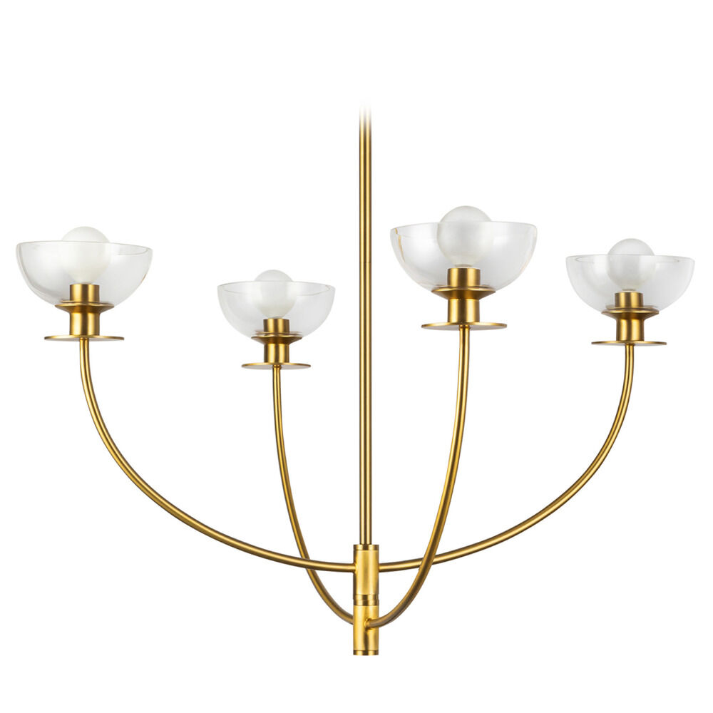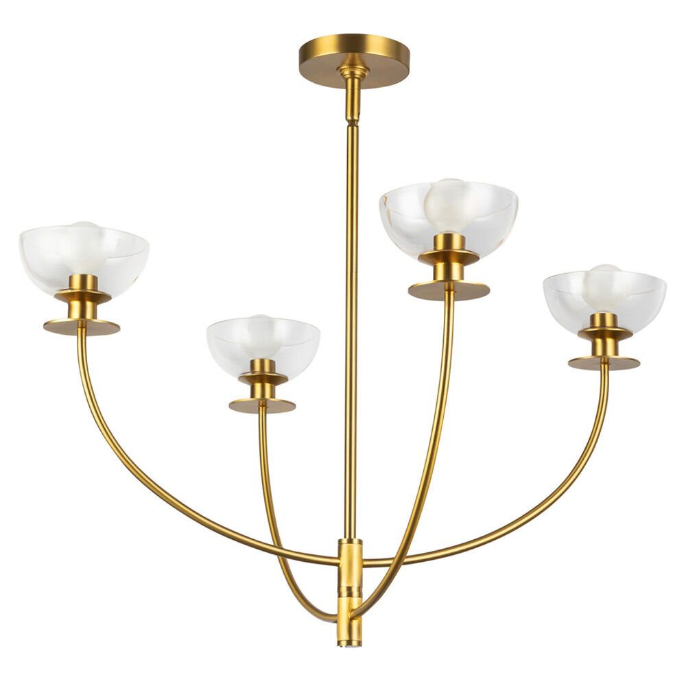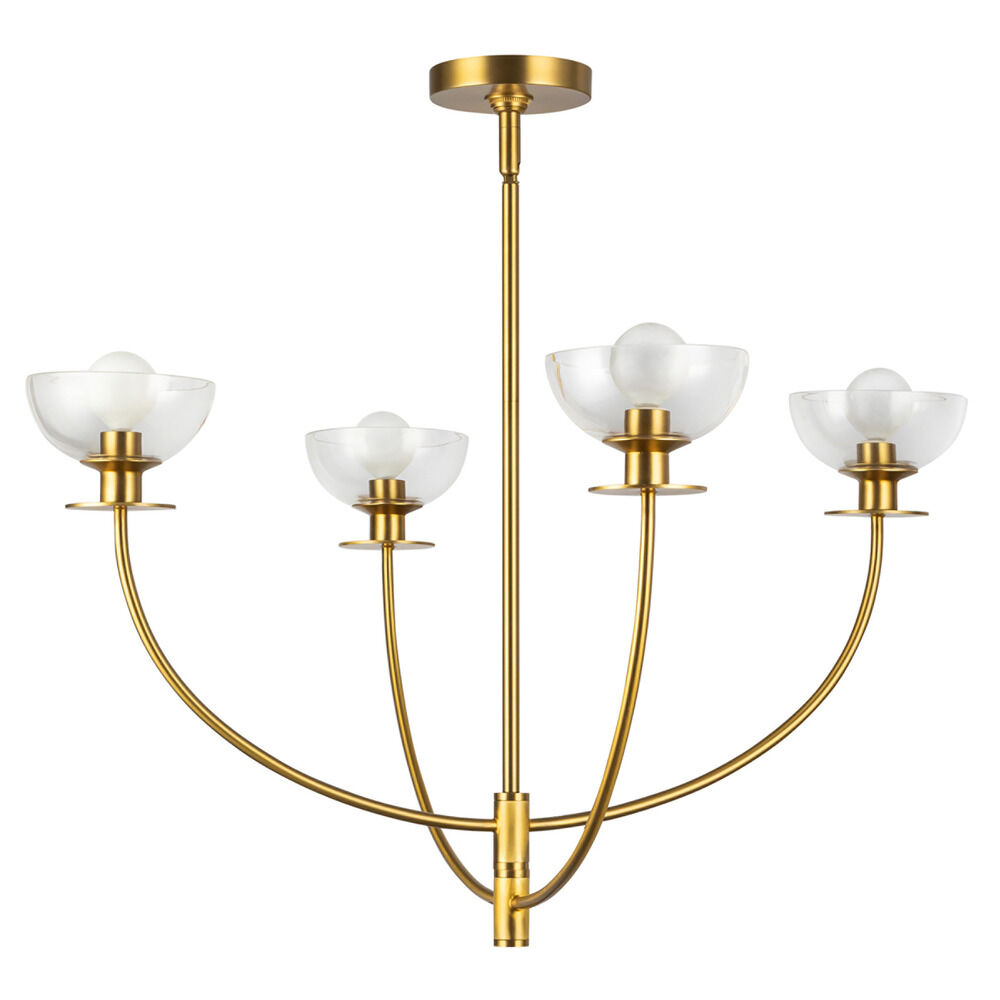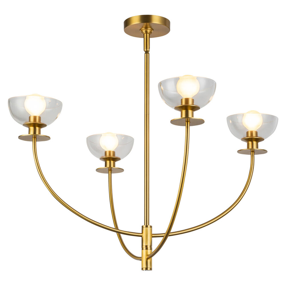 Contemporary / modern brushed gold 4-light chandelier with clear glass shade