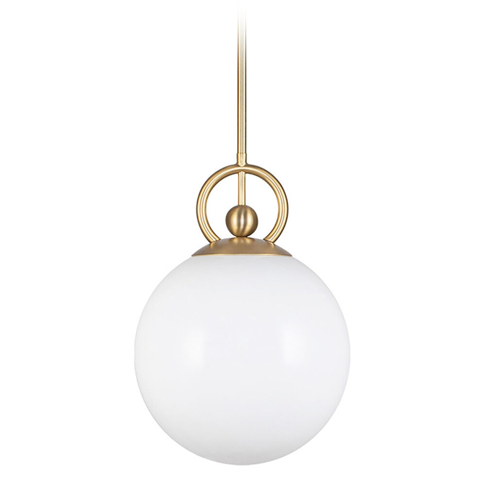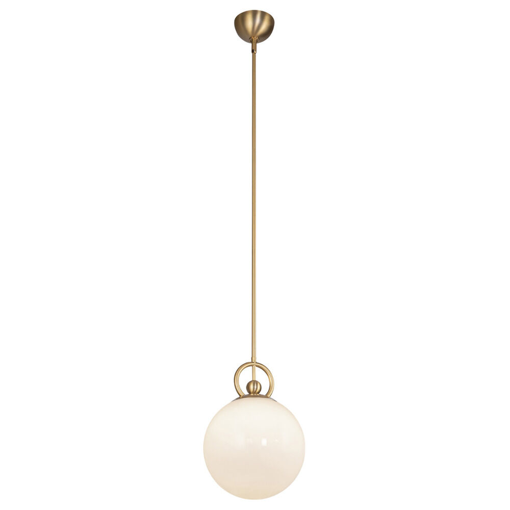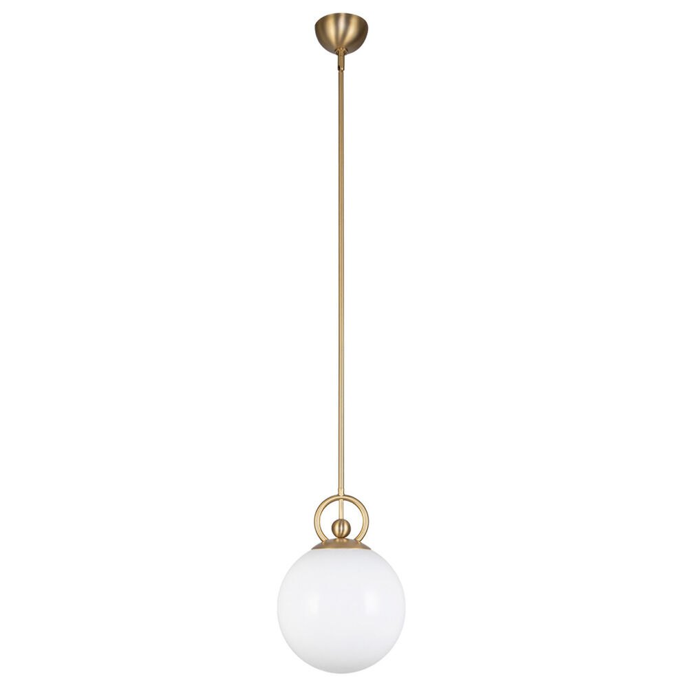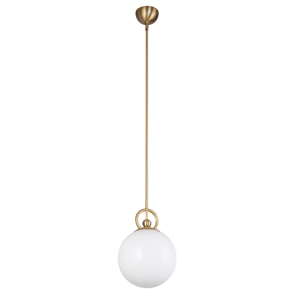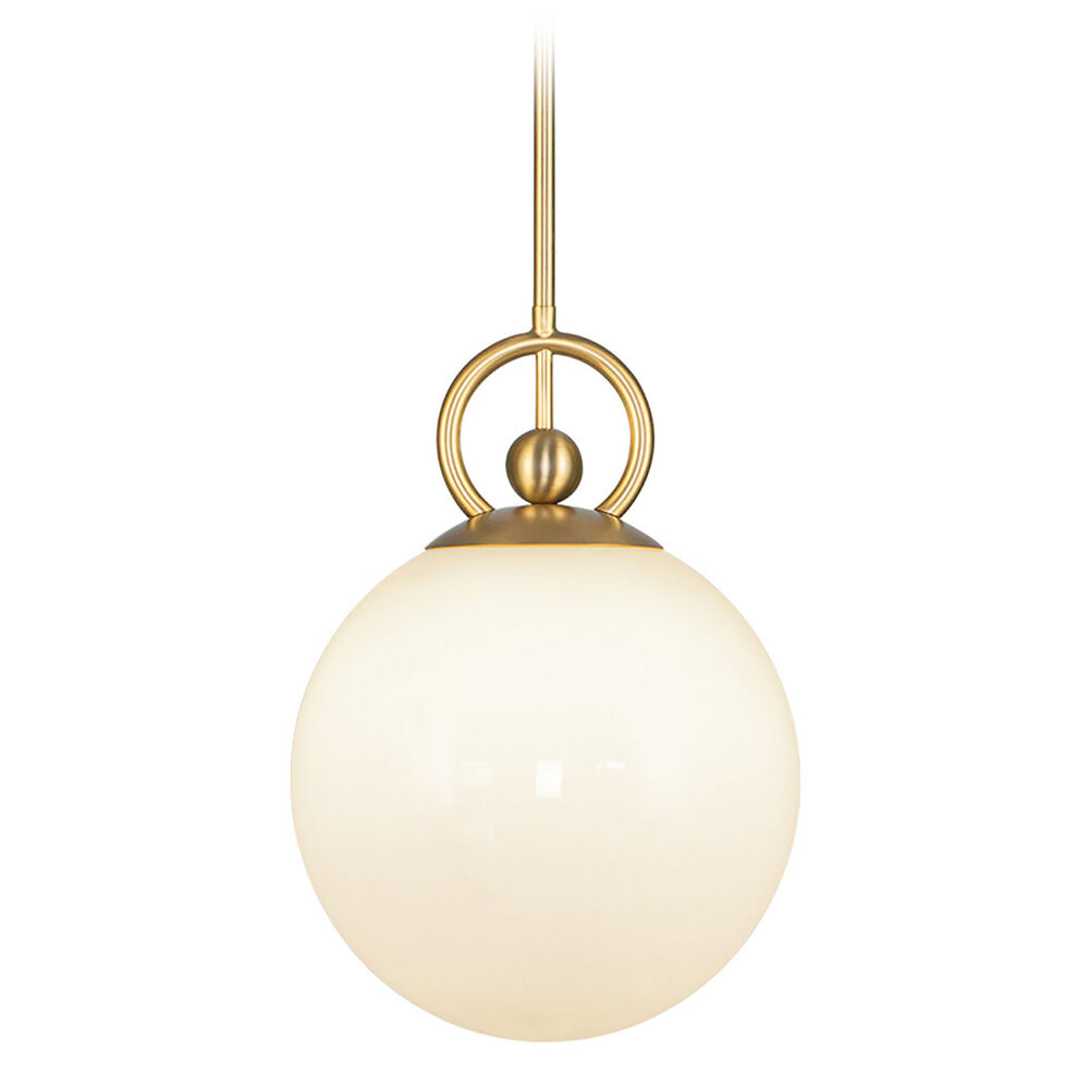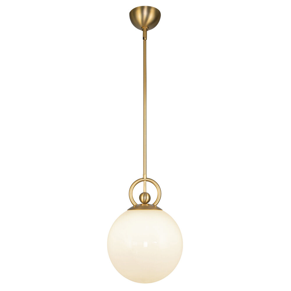 Contemporary / modern brushed gold 1-light mini-pendant light with glossy opal glass shade