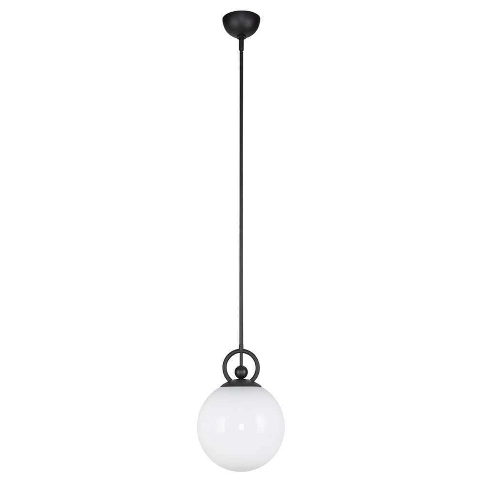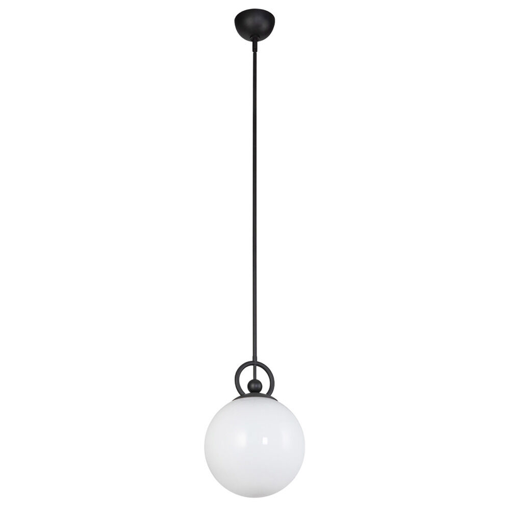 Contemporary / modern matte black 1-light mini-pendant light with glossy opal glass shade