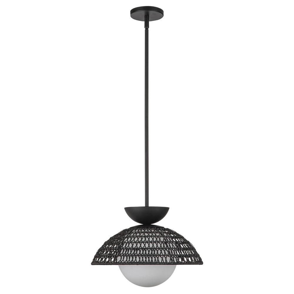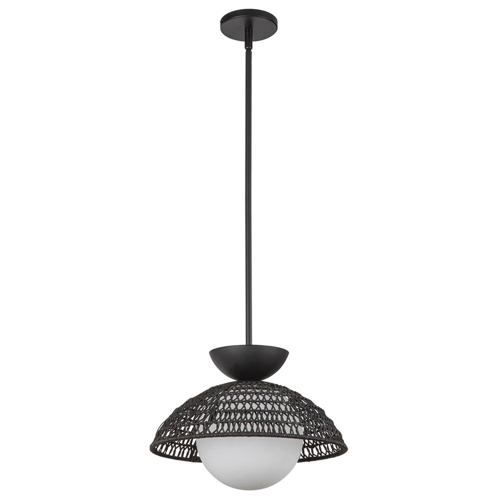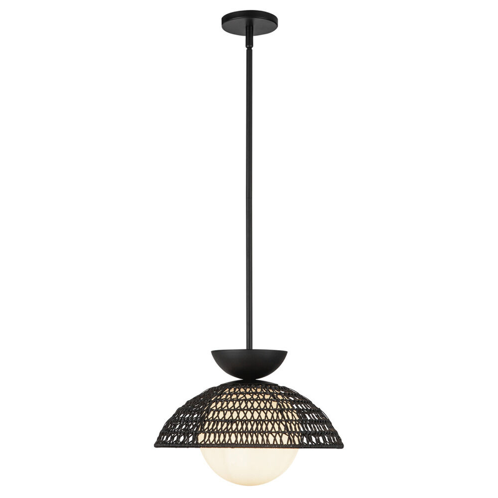 Mid-century modern matte black 1-light pendant light with matte opal glass shade