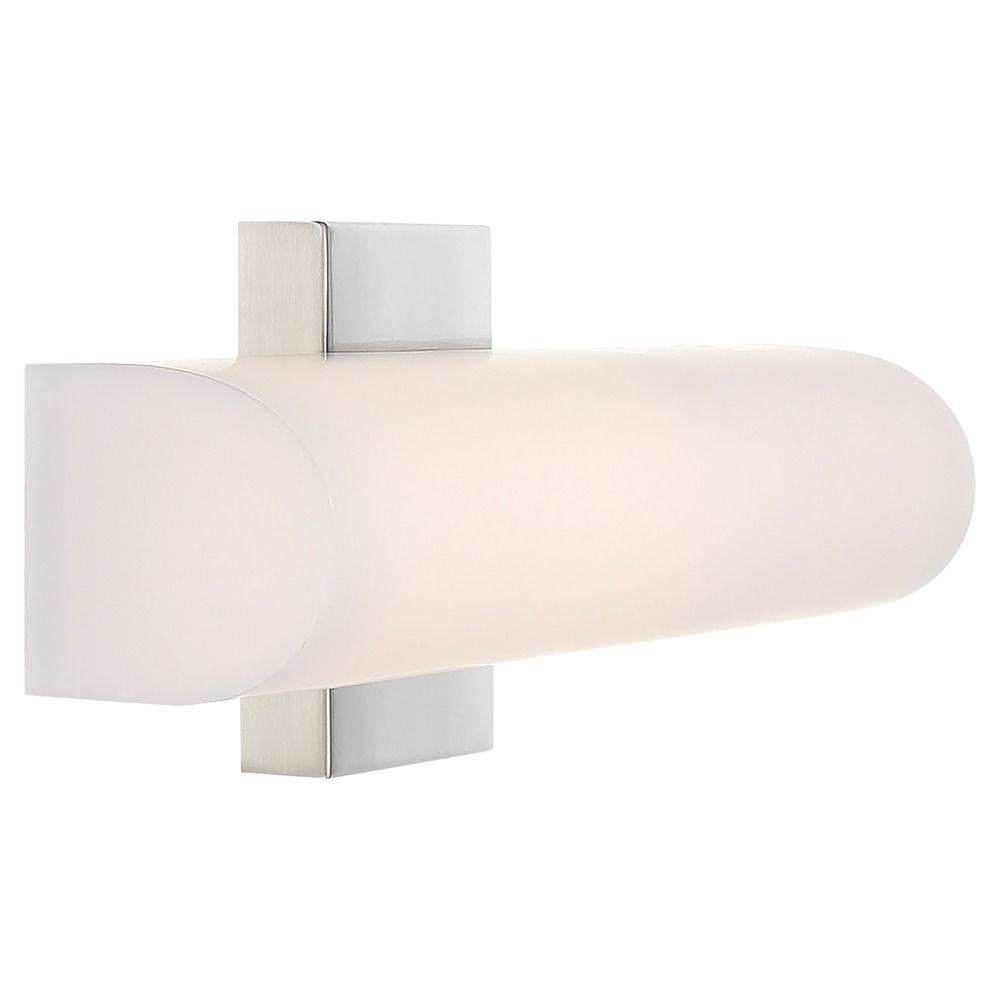 Contemporary / modern brushed nickel 1-light bathroom light with white acrylic shade