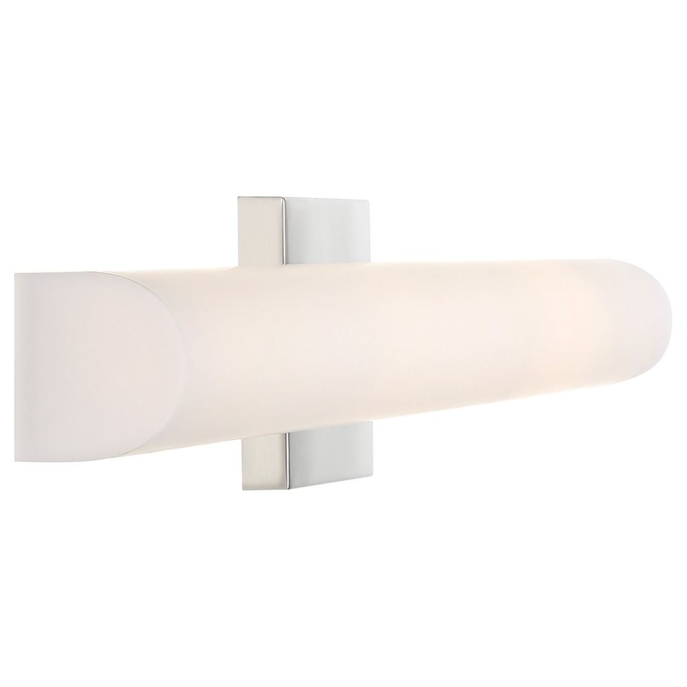 Contemporary / modern brushed nickel 1-light bathroom light with white acrylic shade