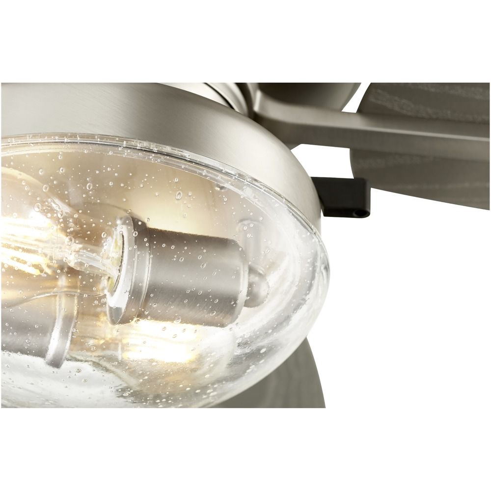 Transitional satin nickel 2-light outdoor ceiling fan with seeded clear glass shade
