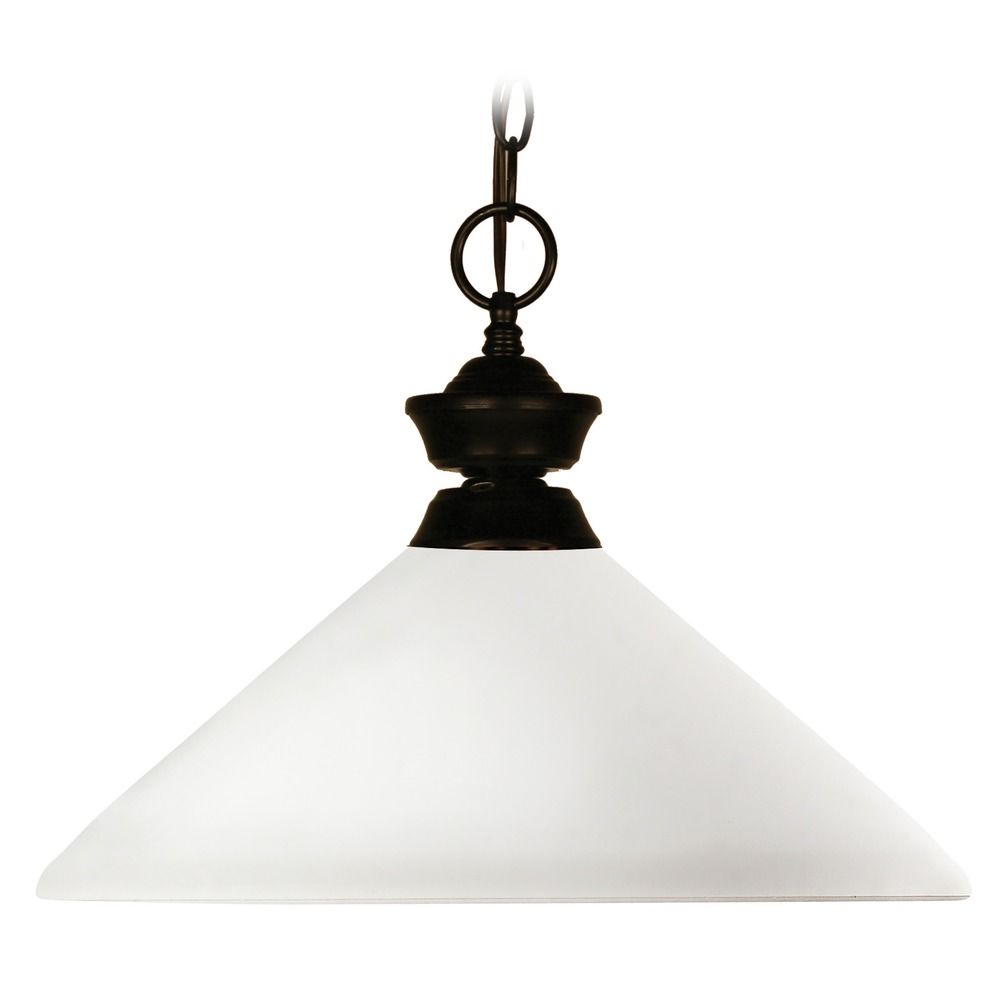 Traditional bronze 1-light pendant light with matte opal glass shade